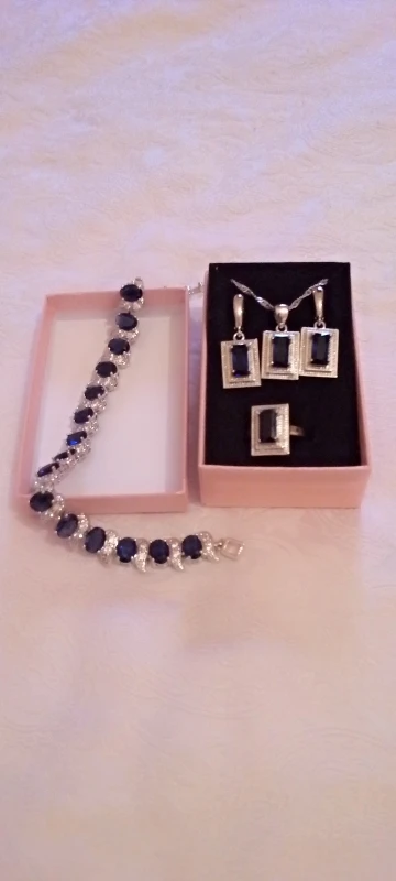 Conjunto de joyas de plata de ley 925 para mujer, pendientes cuadrados de circonia cúbica azul, cadena colgante, anillo abierto, pulsera para mujer, boda