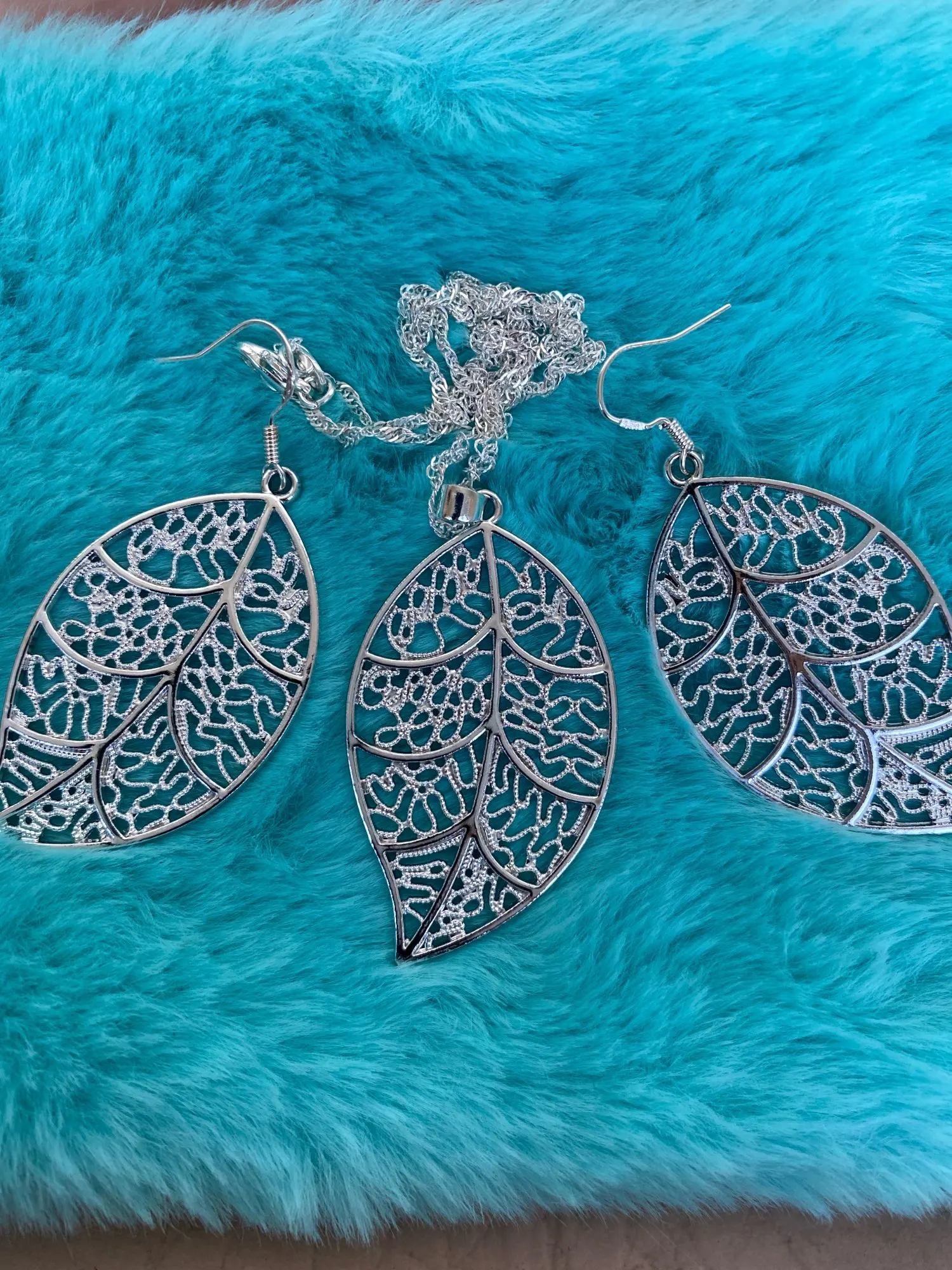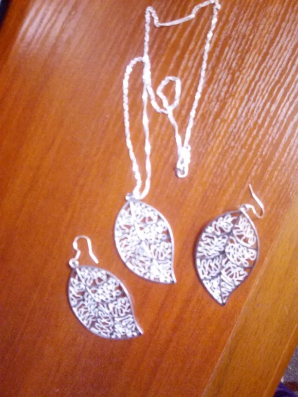 Es precioso este conjunto de plata de ley 925 y tengo otro hecho a mano que compré en un tenderete de gente que hace cosas con sus manos y son hojas trabajadas con los pendientes estilo antiguo y queda que es una pasada al igual que este de plata de ley 925 gracias muchas gracias besos y abrazos para usted y su familia ✌️✌️✌️