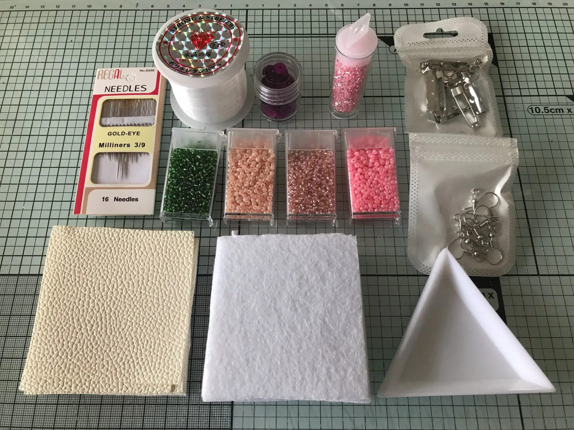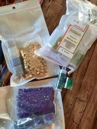 Rápido y en perfectas condiciones. El paquete venia bien embalado. Incluye todos los elementos que se indican (aunque las cuentas rojo mate son naranjas). Son colores que combinan muy bien entre ellos. Las planchas para bordar son firmes y parecen resistentes. Muy contenta con el producto! : )