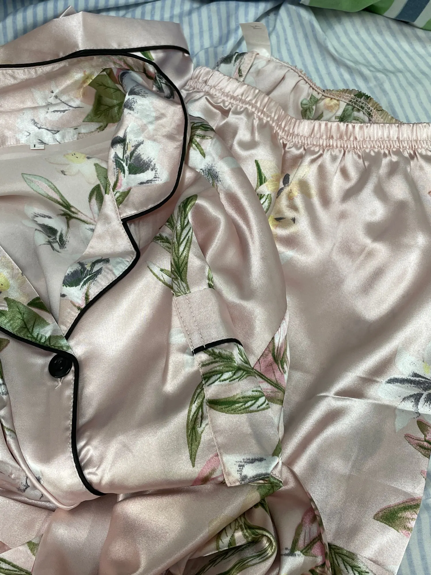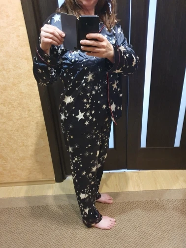 Conjunto de pijama de satén de seda para Mujer, ropa de dormir con pantalones de manga larga y botón de pijama con estampado