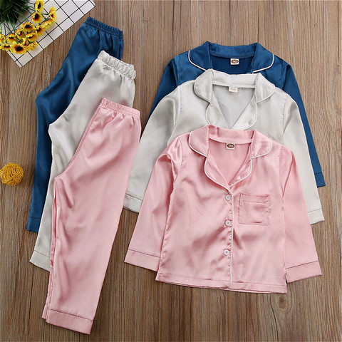 Conjunto de pijama de satén de seda para niños y niñas, ropa de dormir de manga larga con botones, para verano y otoño, 1-7 años