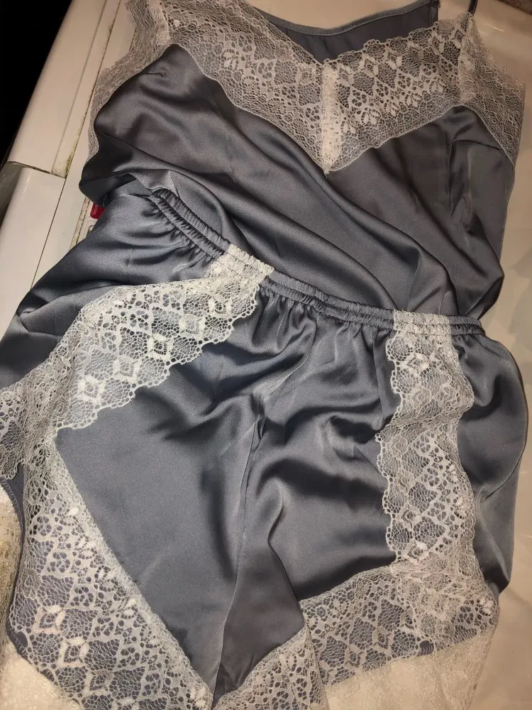 Conjunto de pijamas de encaje con tirantes finos para mujer, Top y pantalones cortos, ropa de dormir de seda, traje de pijama de satén, ropa de noche de verano 2022