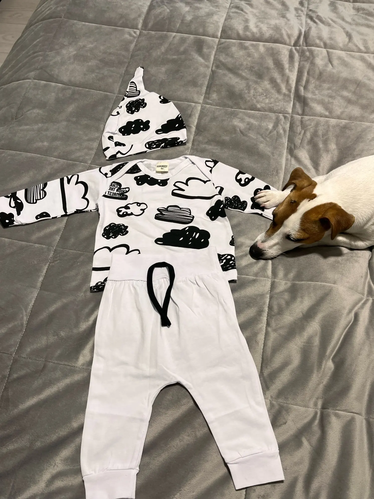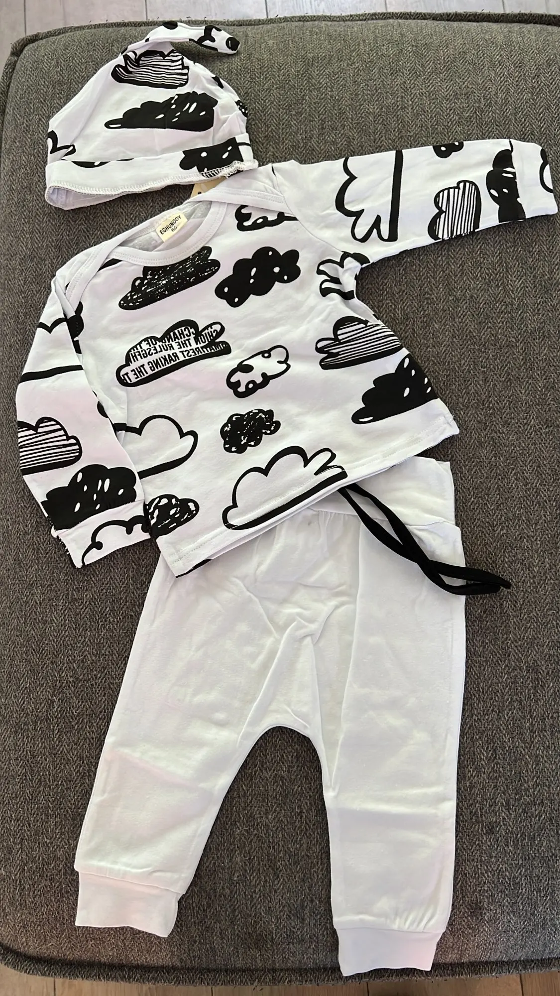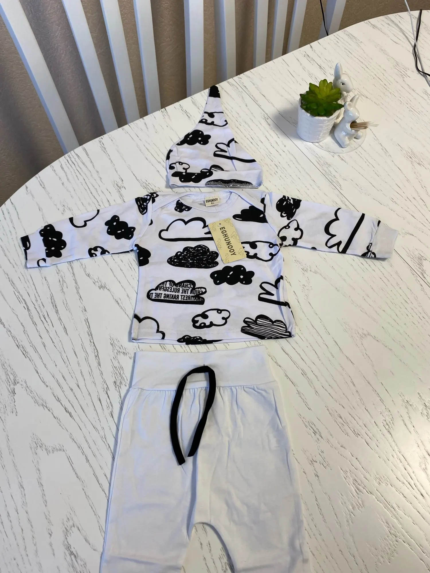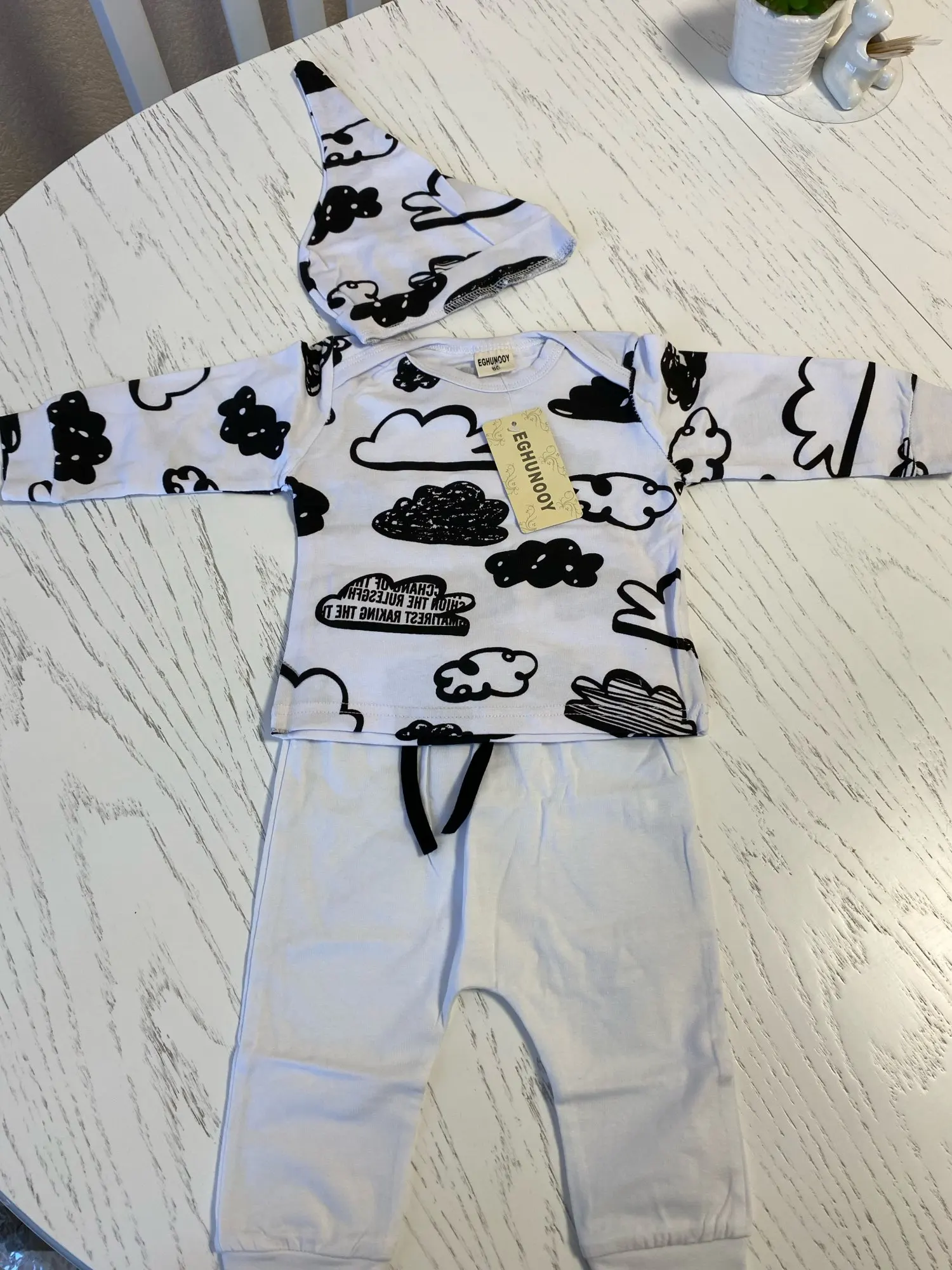 Conjunto de ropa para recién nacidos, camiseta de manga larga de algodón con estampado de nubes + pantalón de Color sólido informal + sombrero, trajes para niños, 3 uds.