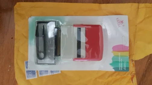 Llego rápido y bien protegido. Idea buena porque haces tu propio sello personalizado. Problema: el número de caracteres que trae es insuficiente porque hay muchos en otros idiomas que nunca vas a utilizar. Admite cuatro líneas de 22 caracteres pero entre la tercera y la cuarta línea no hay separación. Al cambiar el cartucho se caen letras porque las arrastra. Hay que volver a ponerlas. Yo hay letras que no he logrado que se impriman bien, así que no me ha servido.