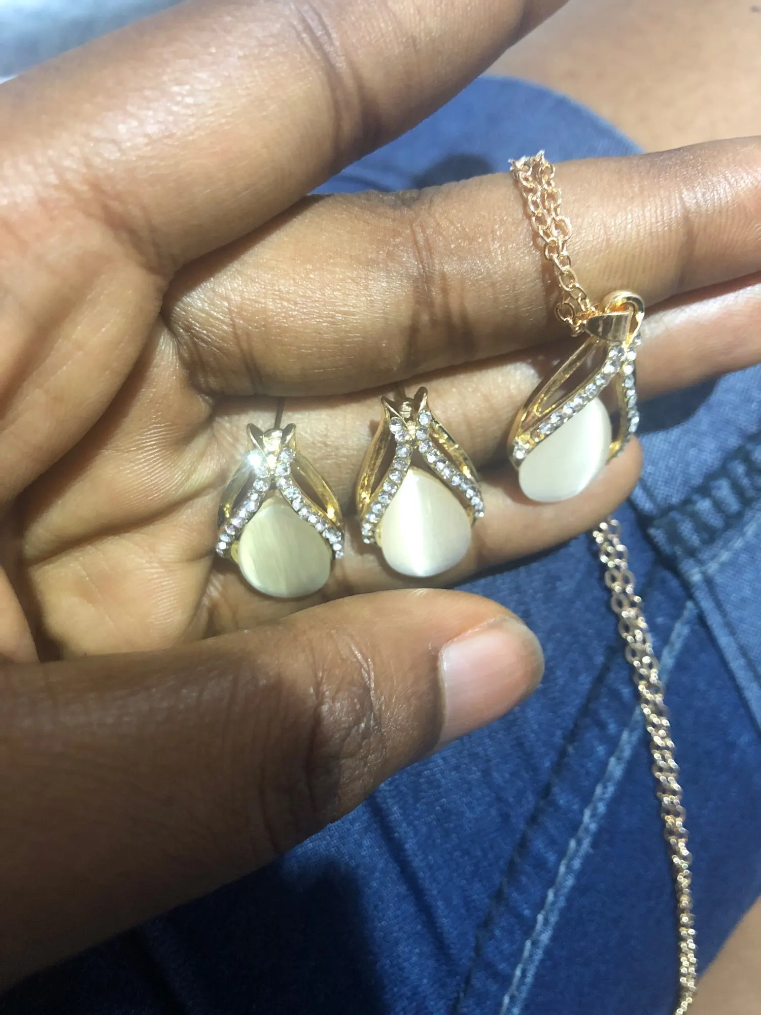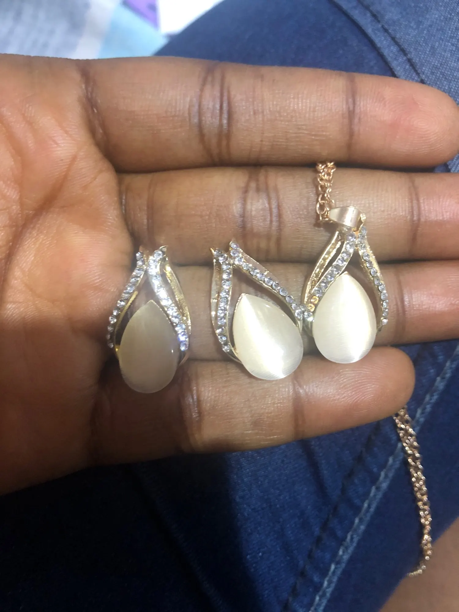 Conjuntos de joyas de ópalo chapadas en oro para mujer, collar de gota de agua de circonia cúbica, conjunto de pendientes colgantes, regalo de Boda nupcial