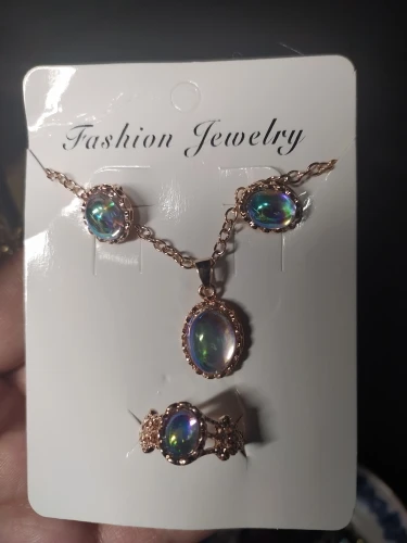 Conjuntos de joyas de ópalo para mujer COLLAR COLGANTE gargantilla pendientes de gota de agua y anillo color dorado bohemio regalos de joyería para boda
