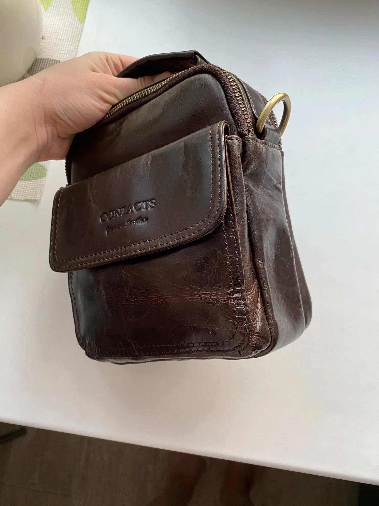 El bolso ha llegado en plazo y en perfectas condiciones. Muy bien embalado y con protecciones interiores para que no se deforme en el transporte. Cumple con las expectativas previstas. El cuero parece auténtico. Me gusta.