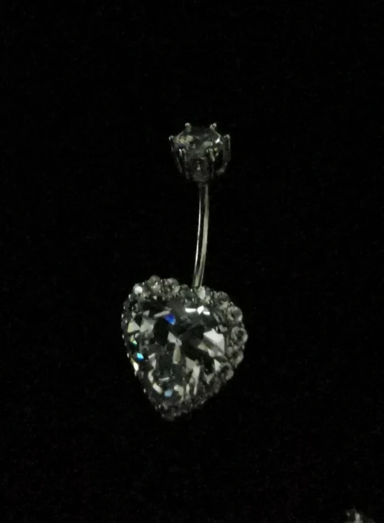 crystal heart 925 silver body bar jewelry piercing belly ring
