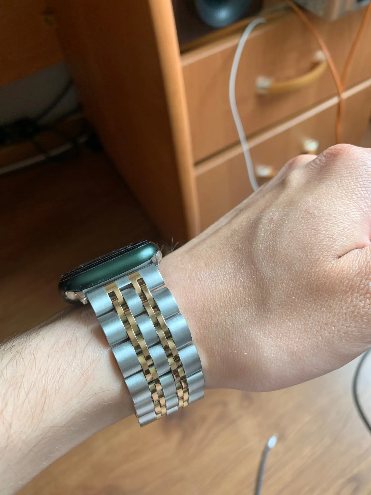 Es igual a la foto pero pesa bastante y viene largo de muñeca