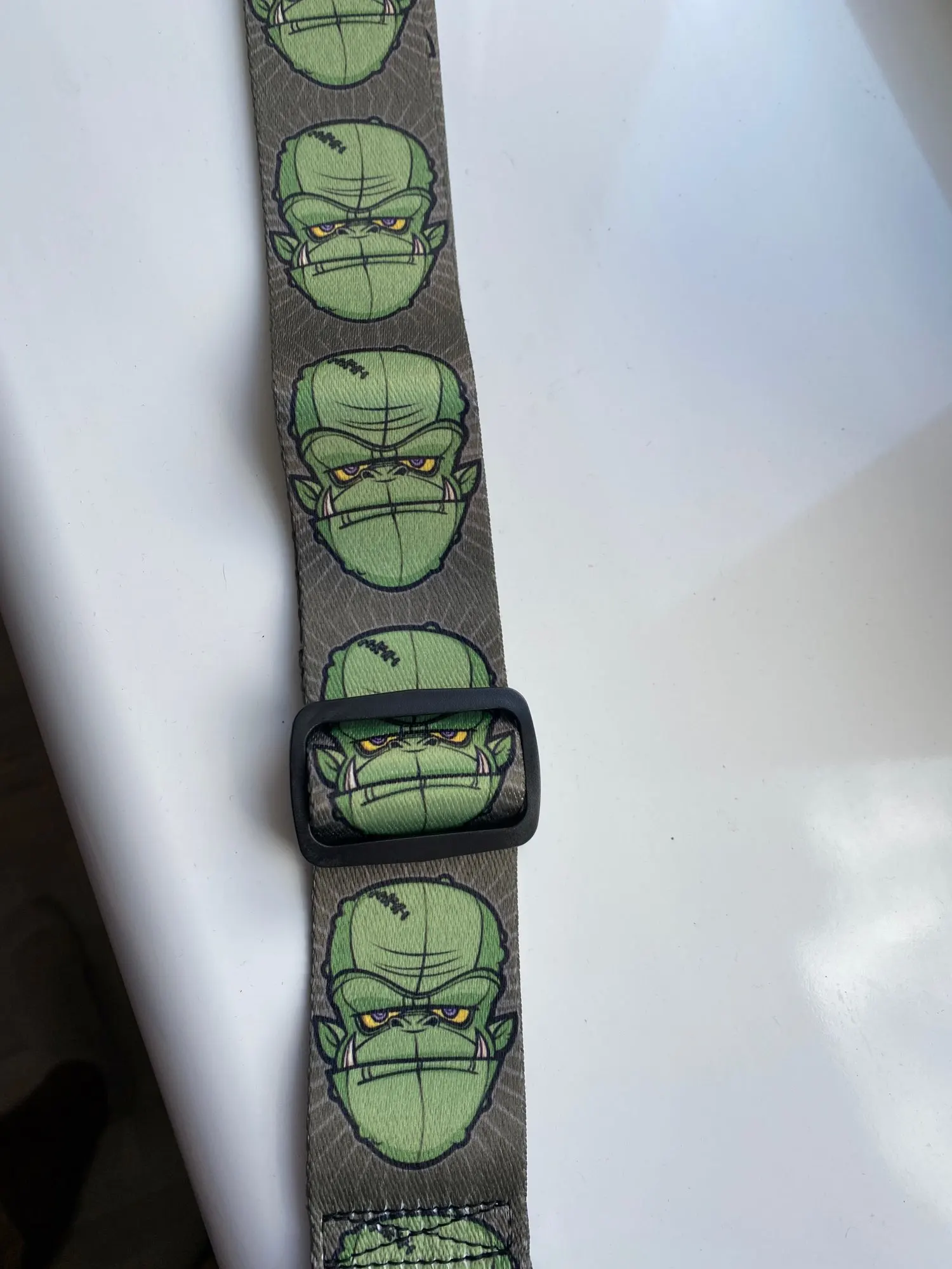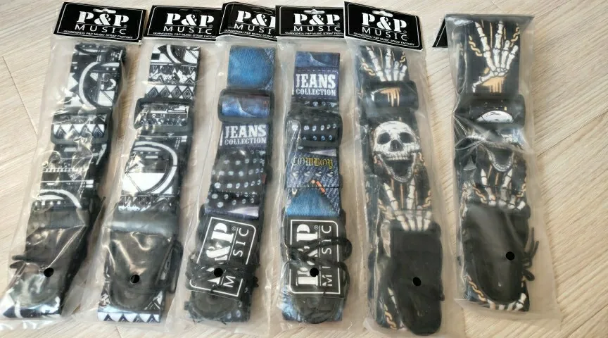 Correa para guitarra eléctrica de extremo de cuero ajustable, poliéster impreso de terileno para ancianos, diseño de Calavera, bajo y guitarra acústica
