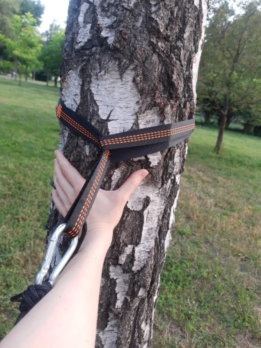 Llegó bien y rápido, cuando las pruebe con la hamaca subo fotos. Puede que queden cortas si el árbol es muy grueso o están muy separados, por eso voy a llevar las correas originales de respaldo.