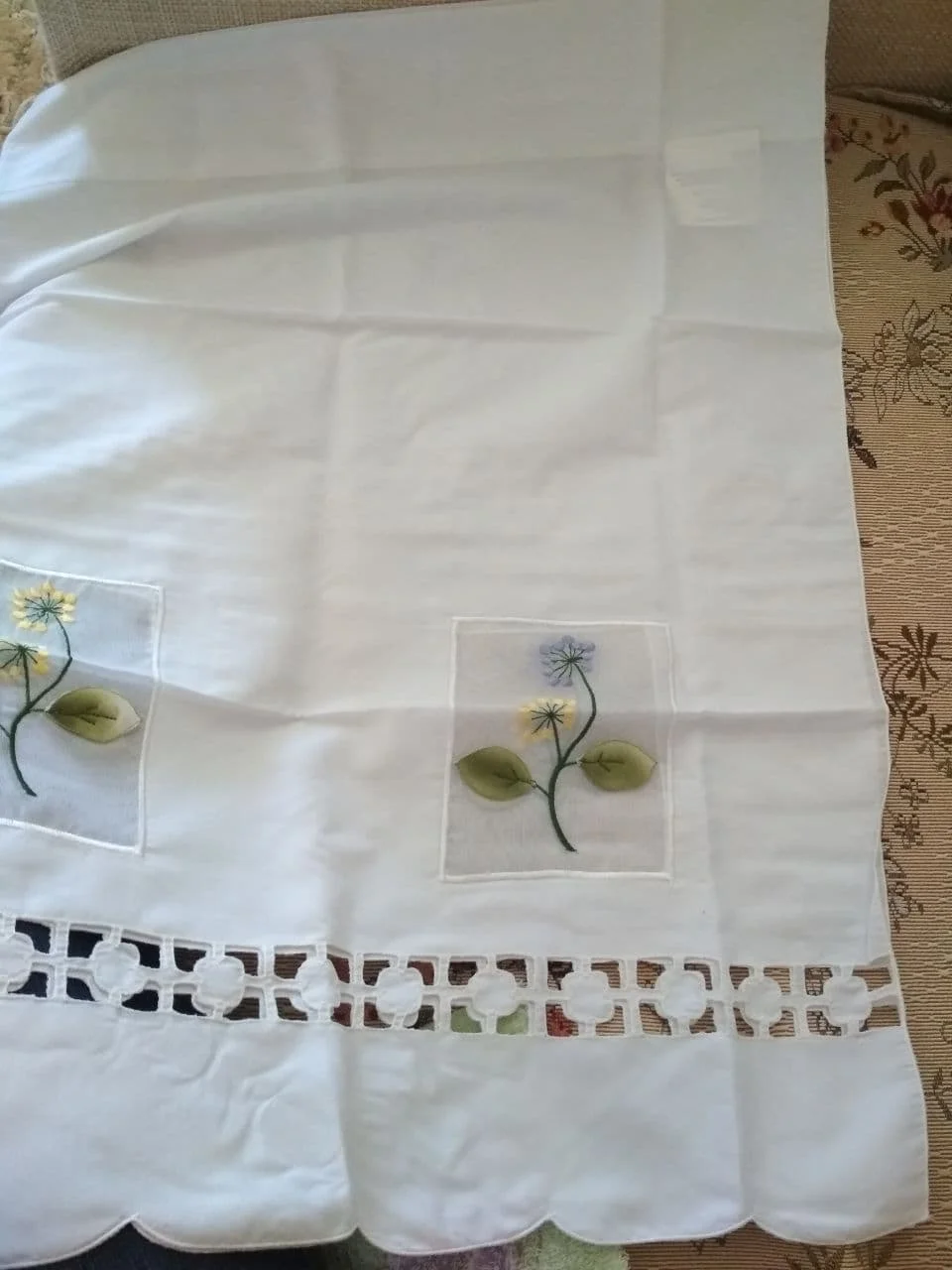 Las cortinas cumplen todas mis expectativas, son blancas y el bordado muy bien hecho . Aconsejo 100#100