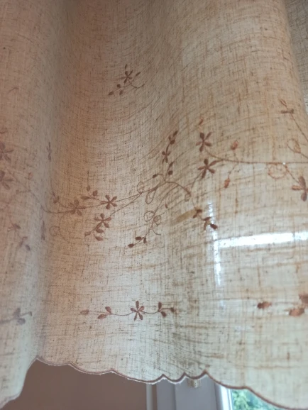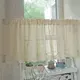 Cortina de cocina bordada con flores pequeñas de estilo europeo, cortina corta de lino para ventana de cocina, 3 tamaños