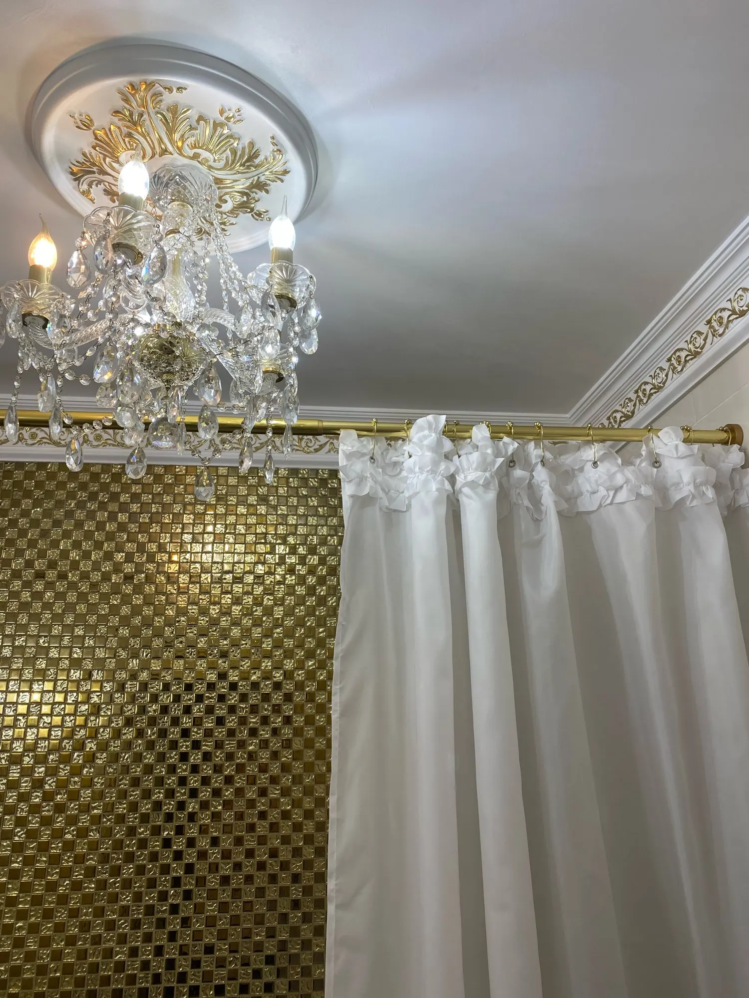 Cortina dorada de lujo, conjunto de varillas ajustables, barra de ducha de baño (cortina de terciopelo de doble capa no incluida)