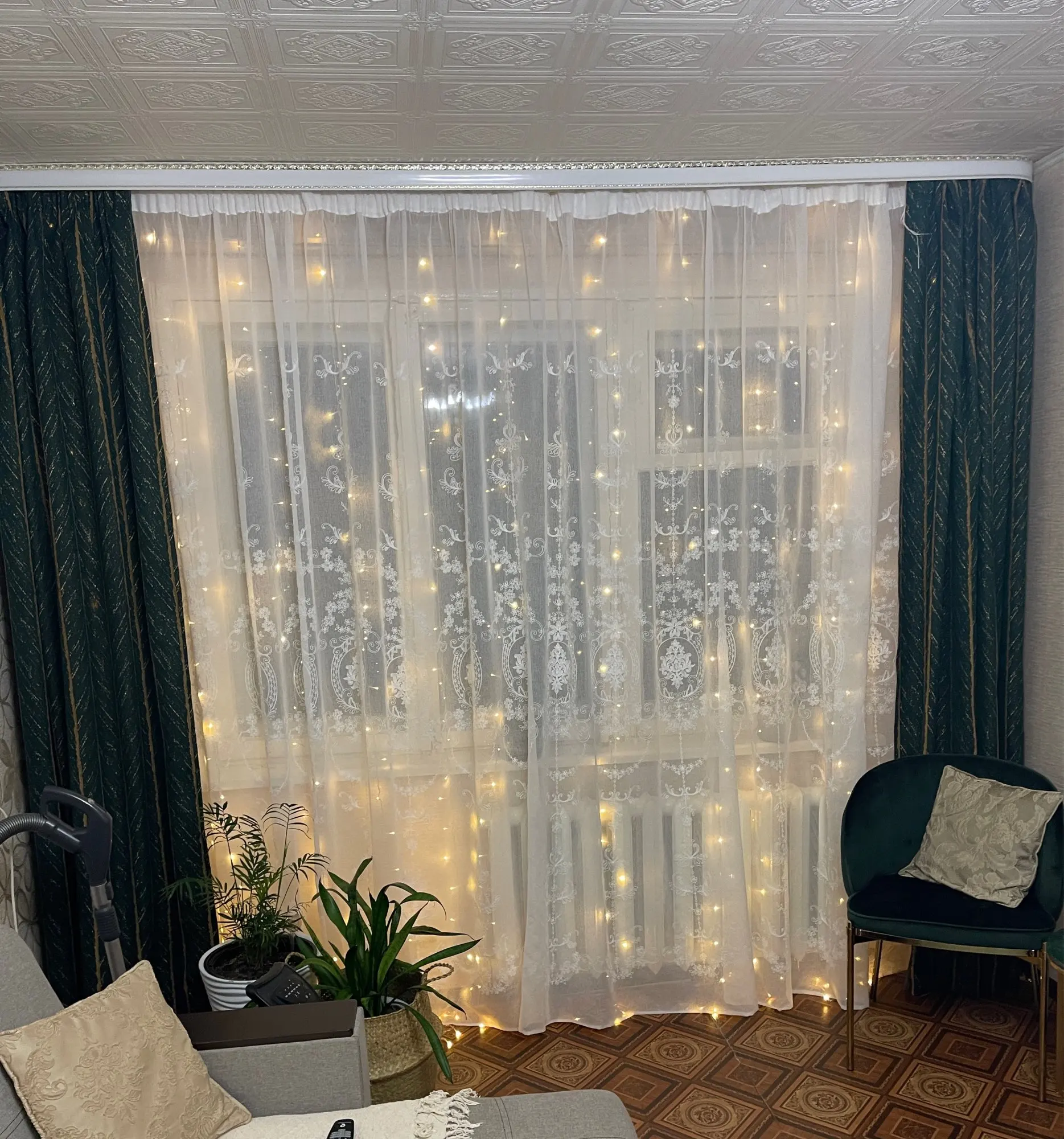Cortinas para sala de estar nórdica Ins, dormitorio, Retro verde de lujo, luz americana, producto acabado de cortinas personalizado