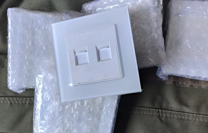 Coswall-Panel de cristal doble RJ45, Conector de Internet de 8 núcleos CAT6E, salida de PC, toma de datos de pared