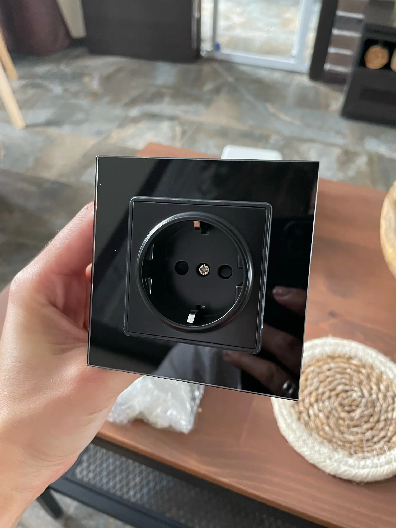 Coswall pared Panel de cristal enchufe a tierra, 16A negro UE enchufe eléctrico estándar 86mm * 86mm