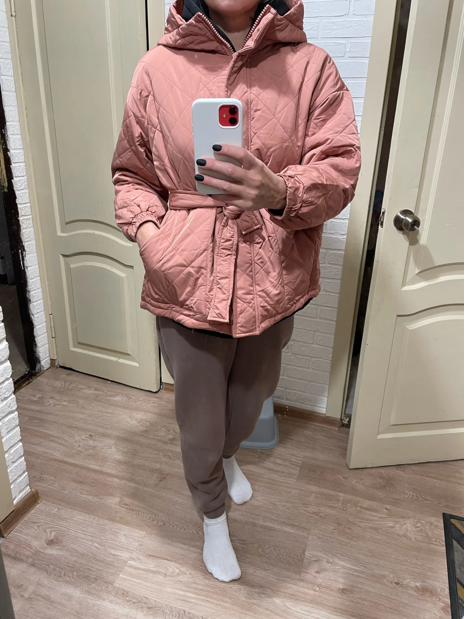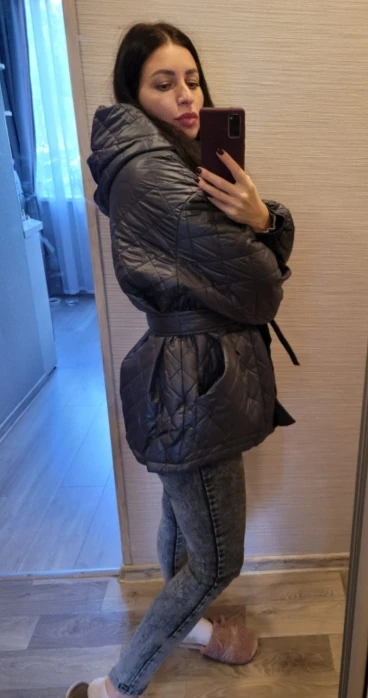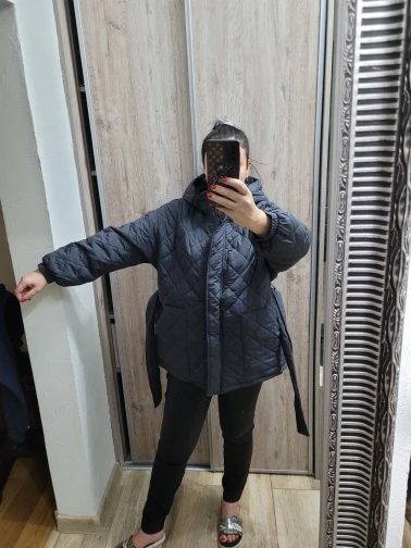 CP-Parkas holgadas informales con capucha de Arygle para mujer, abrigos cortos de color sólido grueso a la moda para mujer, chaquetas de algodón con cinturón de corbata elegantes para mujer
