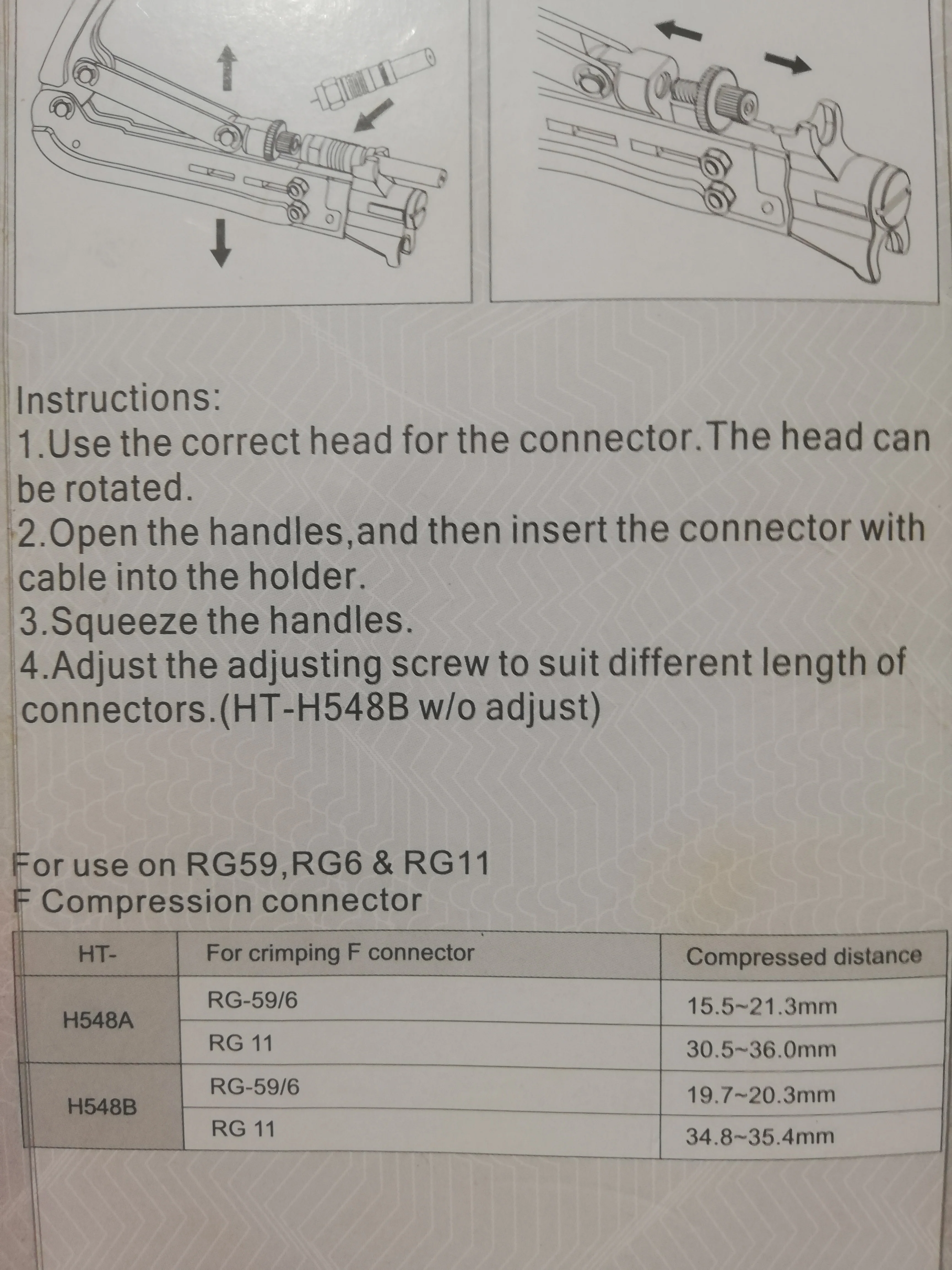 Coaxial Cable Crimper Compression Tool