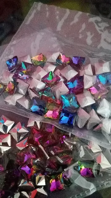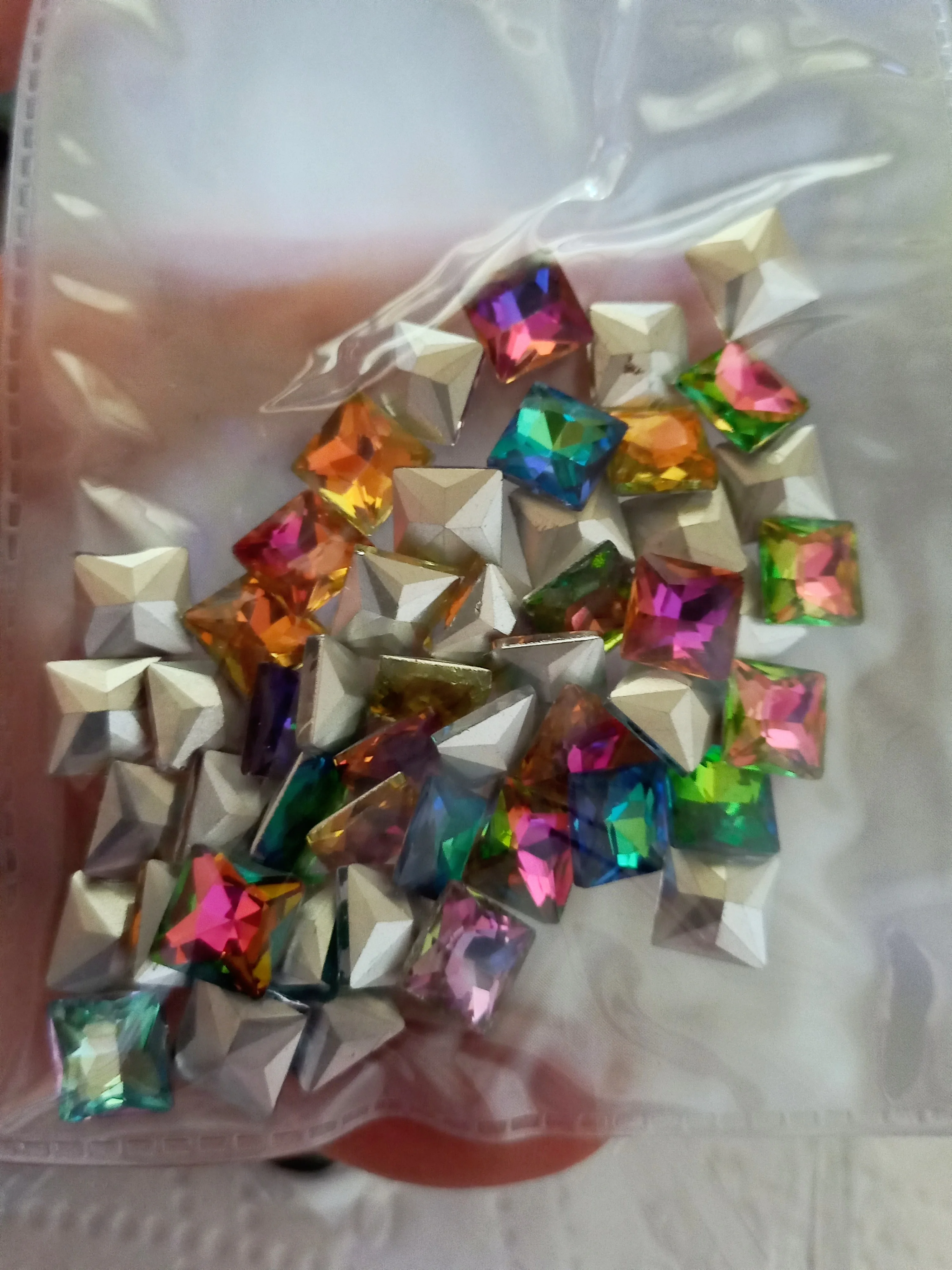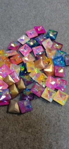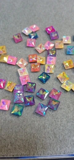 Cristal de cristal de 8mm, Forma cuadrada, arcoíris y gelatina, colores AB, punto trasero, pegamento en cuentas de diamantes de imitación, apliques, adorno artesanal