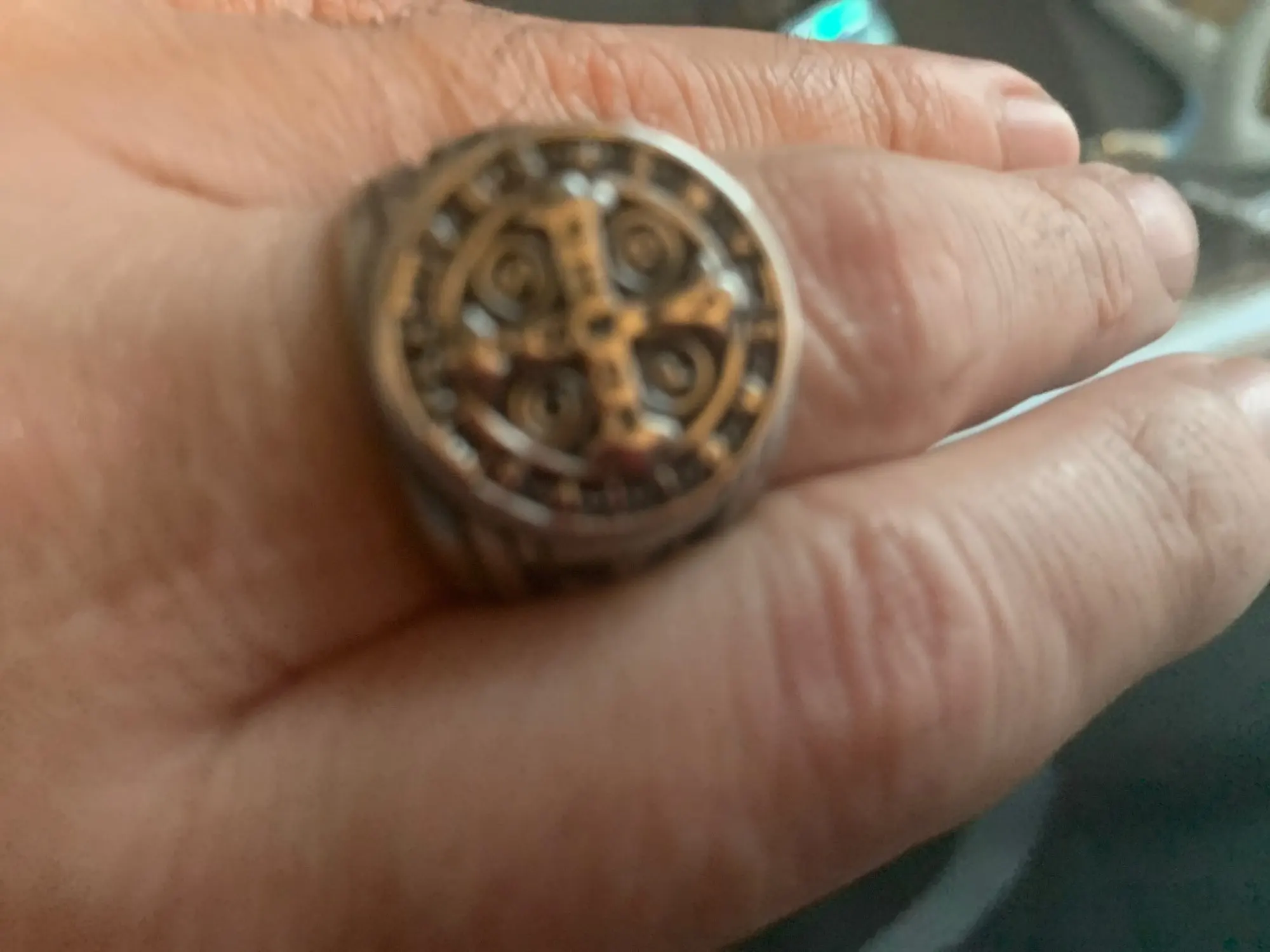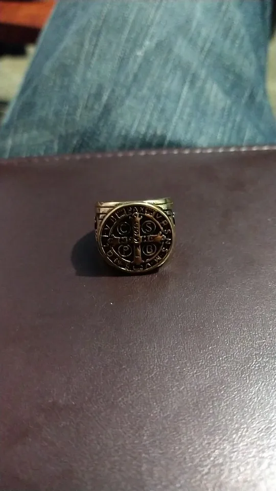 Cristianismo Jesús exorcismo anillo oro negro de plata de acero inoxidable de Color CSPB CSSML NDSMD Saint Benedict de Nursia anillo
