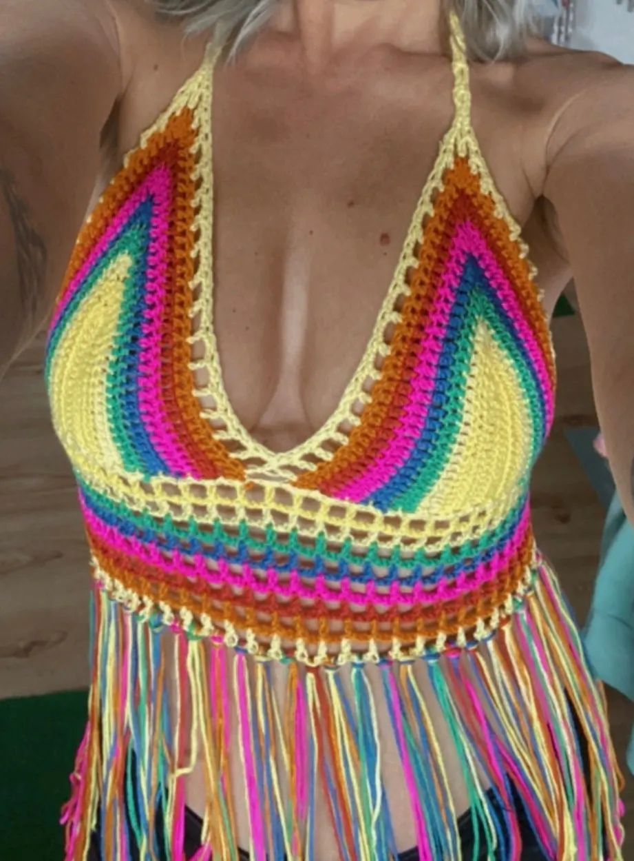 Croché ahuecado con borlas para mujer, playera Sexy, minitops, ropa de playa, Bikini, traje de baño cubierta