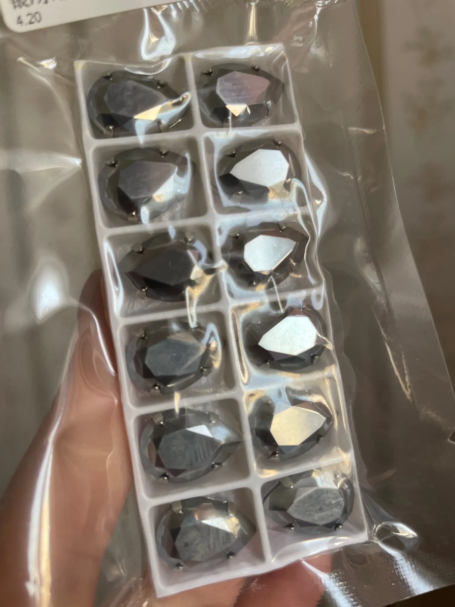 CTPA3bI Crystal Jet Color de hematita de gota de vidrio con plata garra dorada en miniatura coser en diamantes de imitación DIY Ropa Accesorios de vestido de novia