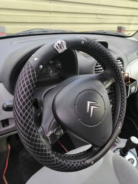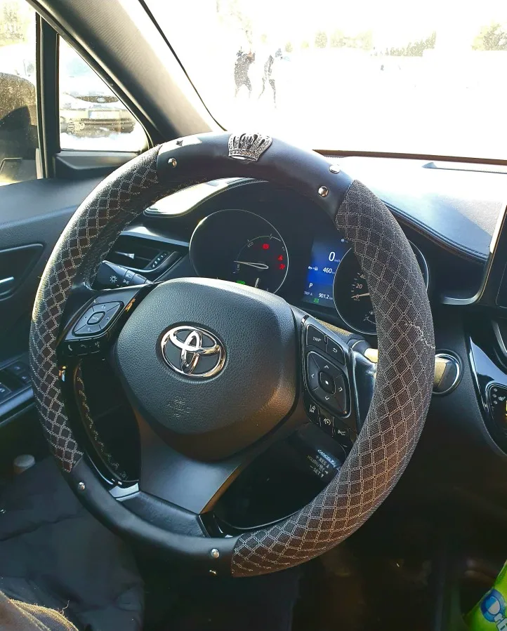 Cubierta de cuero para volante de coche para mujer, cubierta de diamante brillante con remaches, para las cuatro estaciones, estilo de coche