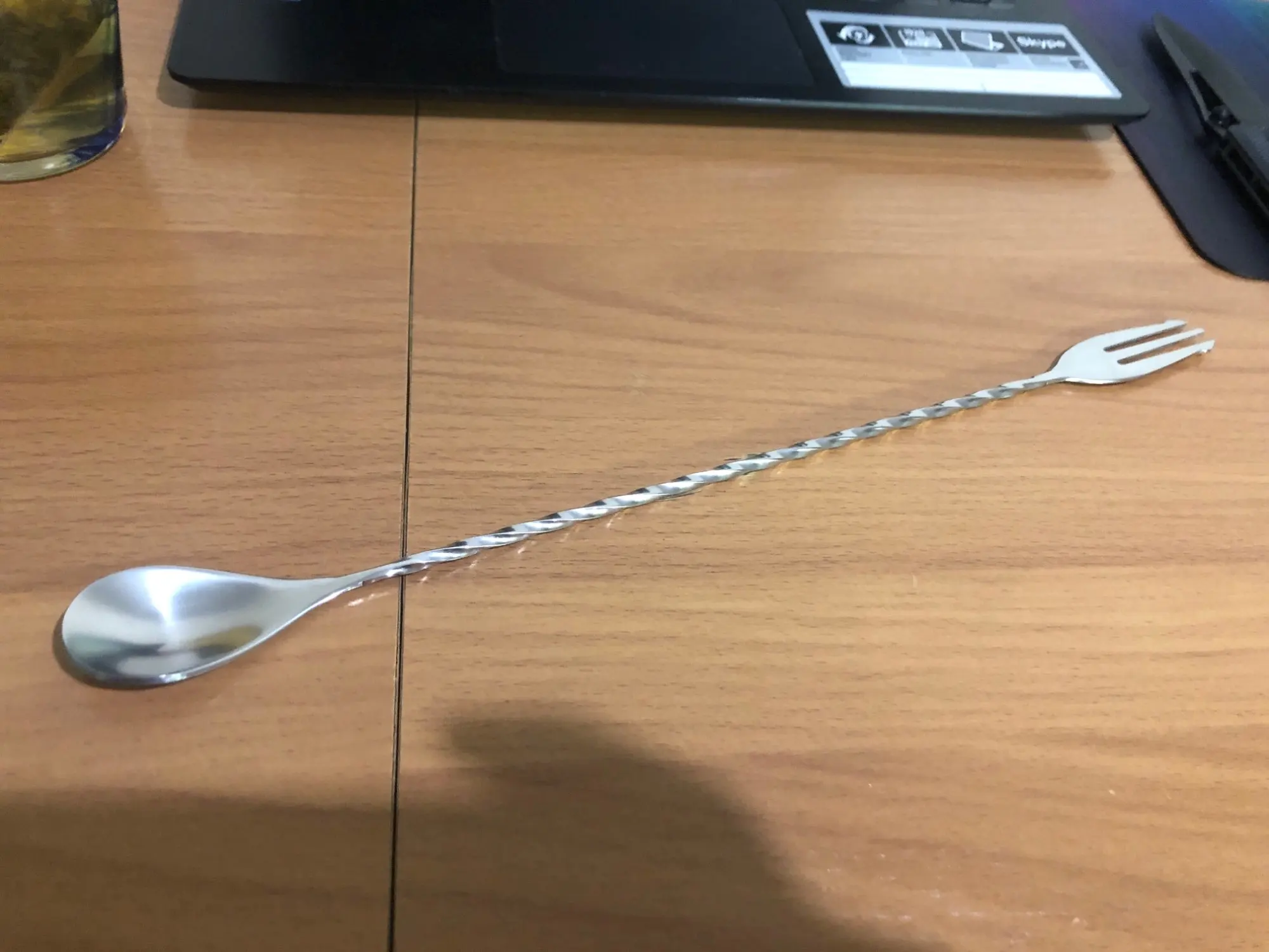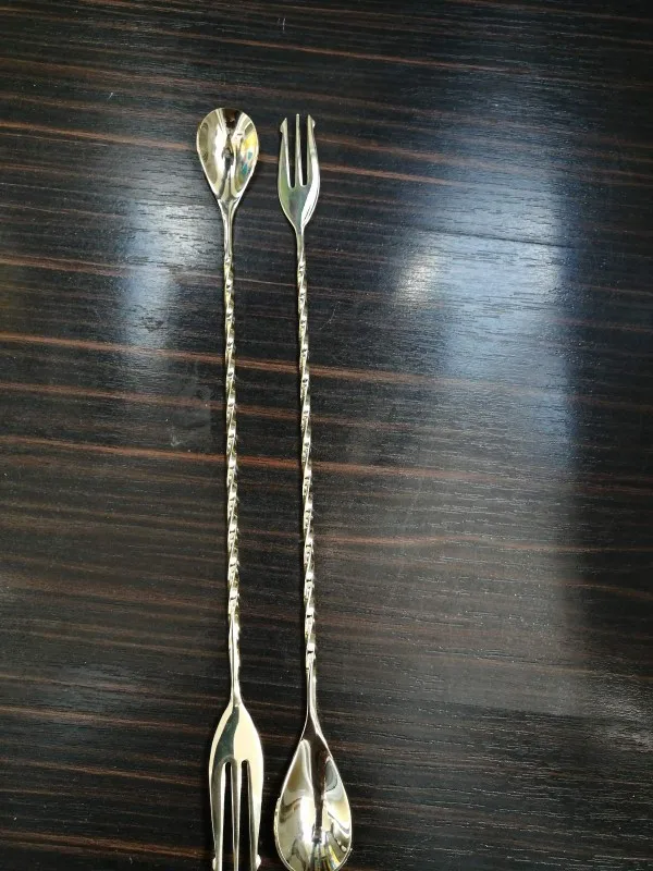 Cuchara de cóctel de acero inoxidable, herramienta de Bar de Patrón En Espiral, herramientas de camarero con tenedor