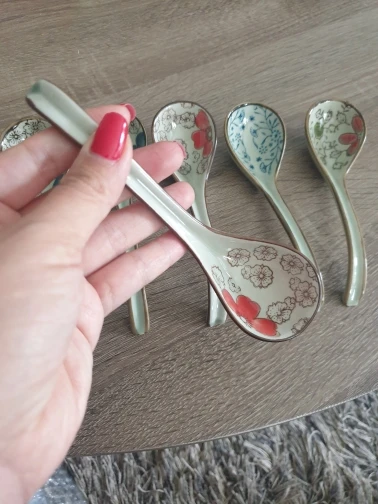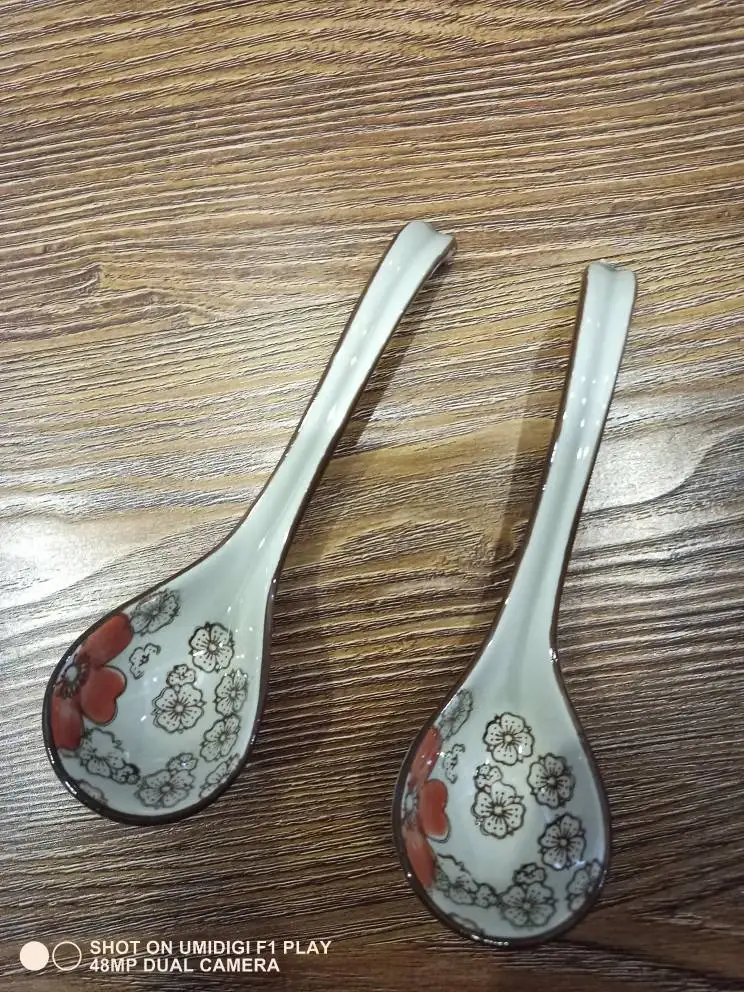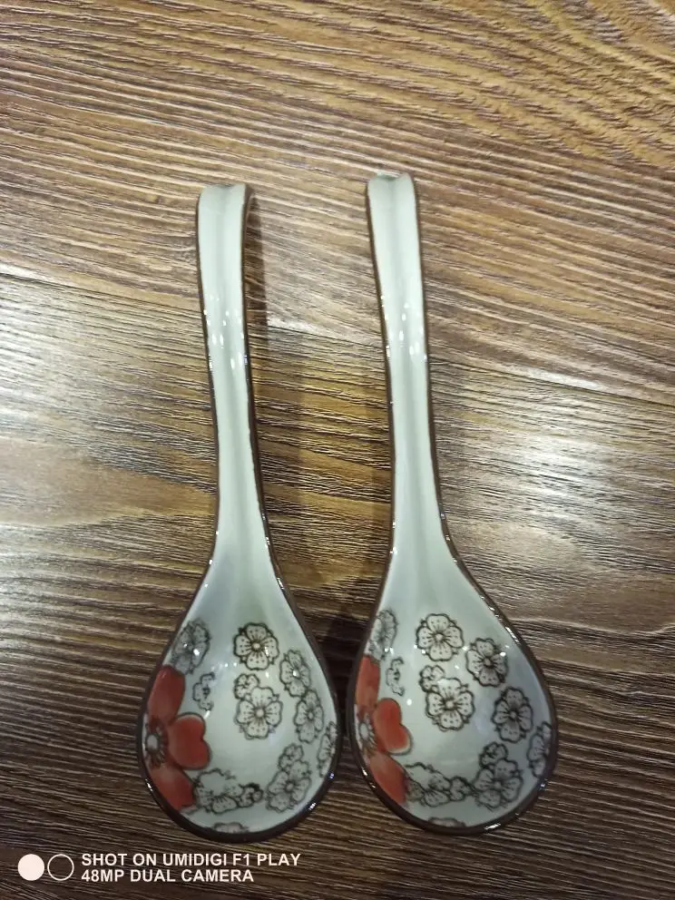 Cuchara de estilo japonés para el hogar, cuchara con mango largos de cerámica, cubertería creativa para cocina, 1 unidad