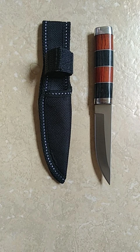 Cuchillo de madera con mango de espejo, pequeño cuchillo recto colorido para pesca, cuchillo de fruta afilado para el hogar