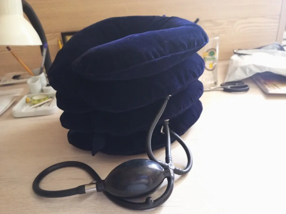 Cuello portátil Tractor ortopedia de recuperación de 4 capas inflable cuello almohada Collar de tracción masaje relajación la camilla