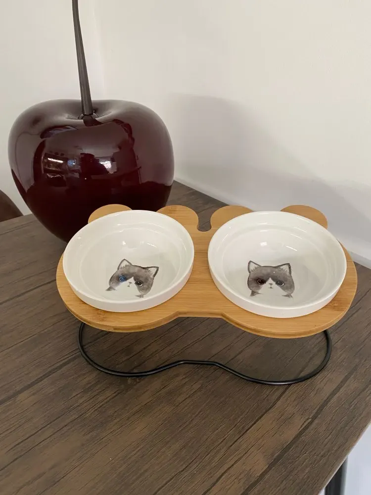 Cuenco de bambú de alta gama para mascotas, cuencos de Alimentación y Bebidas de cerámica para perros y gatos, accesorios alimentadores para mascotas, nuevo