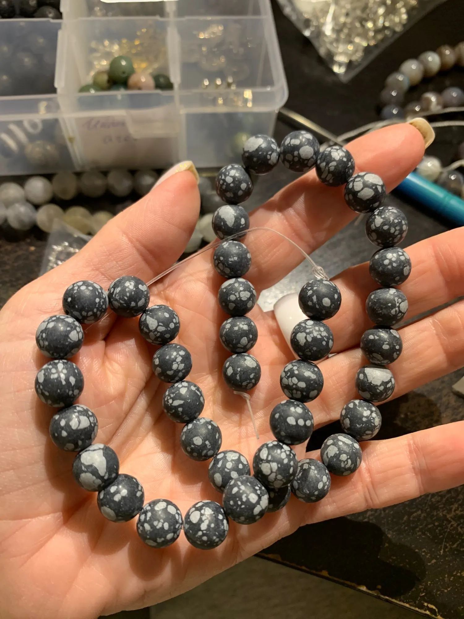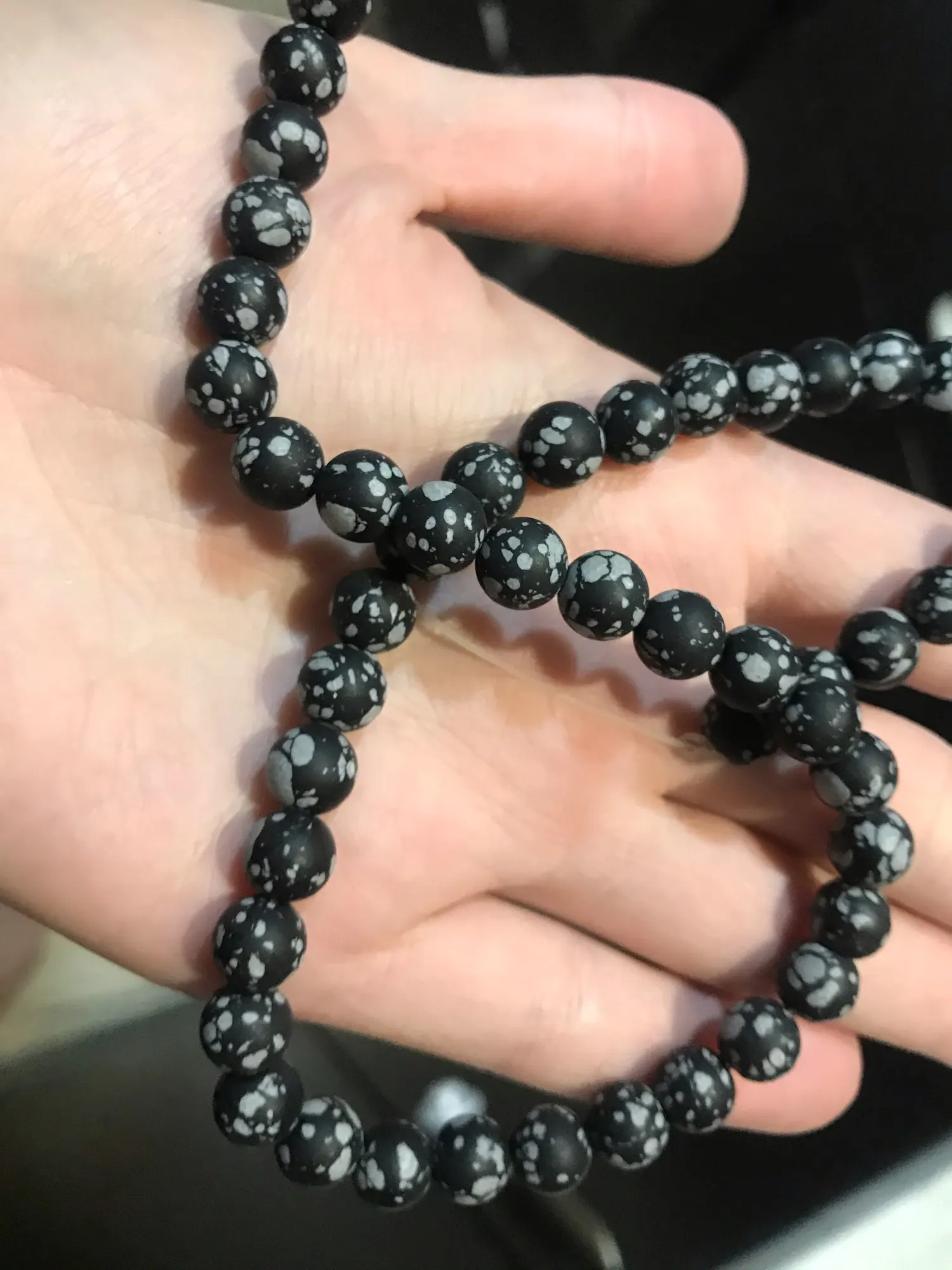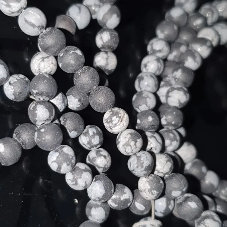 Cuentas de jaspe obsidiana de copos de nieve mate Natural, cuentas de piedra sueltas para fabricación de joyería DIY, pulsera de 15 ", 4/6/8/10/12mm