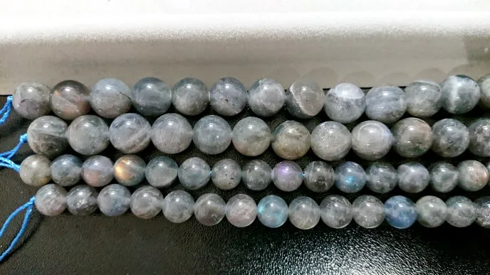 Cuentas de labradorita de larvikita gris Natural AAAAA, cuentas de piedra redonda suelta de 4/6/8/10 MM para fabricación de pulseras DIY, accesorios de joyería