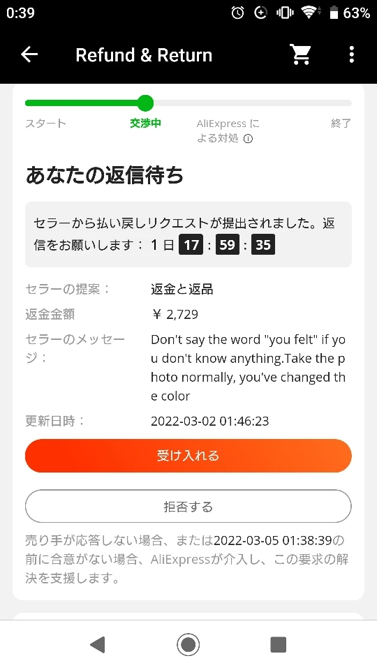 Valoración de Aliexpress: