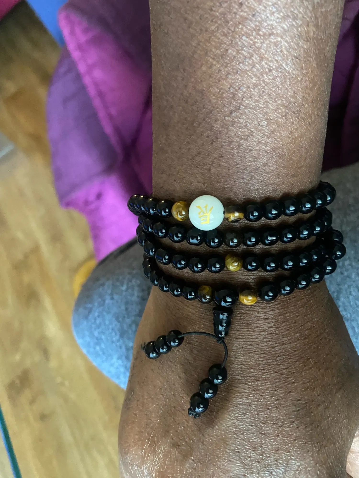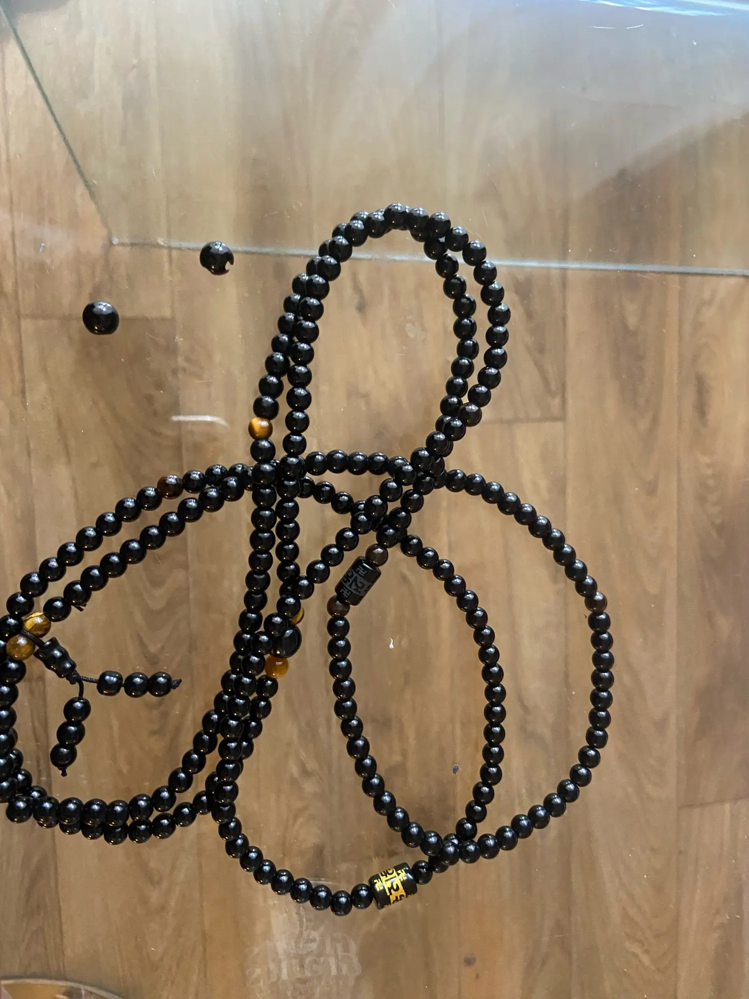 Cuentas de oración naturales de color negro, pulsera de piedra de ojo de Tigre, collar de hilo, Mala, Rosario, budista, amante de Buda, amuleto de la suerte, joyería, 108