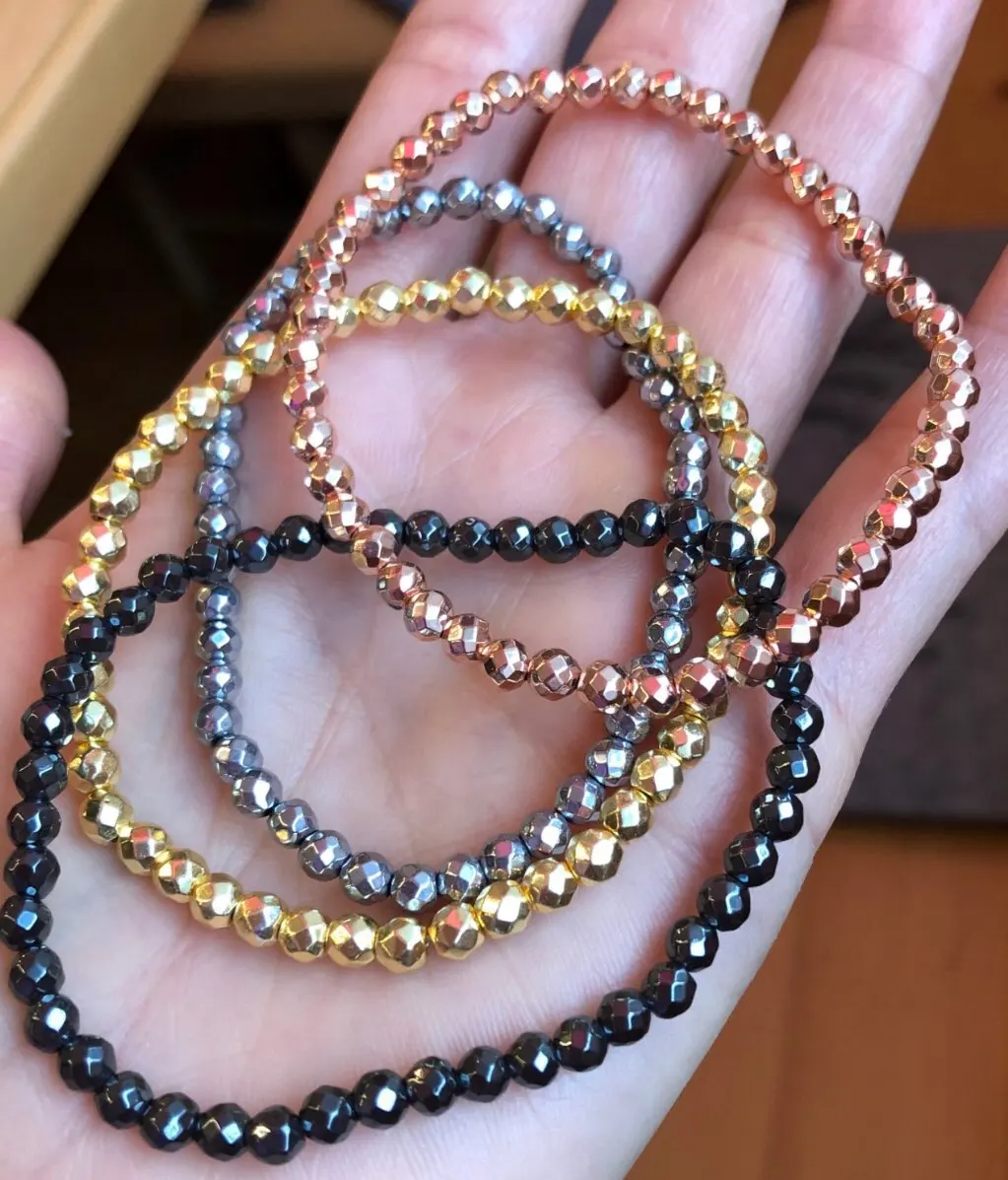 Cuentas de piedra Natural AAA para fabricación de joyas, cuentas de hematita plateada facetadas para fabricación de joyas, abalorios redondos de 15 pulgadas, 2/3/4/6/8/10mm, pulsera Diy