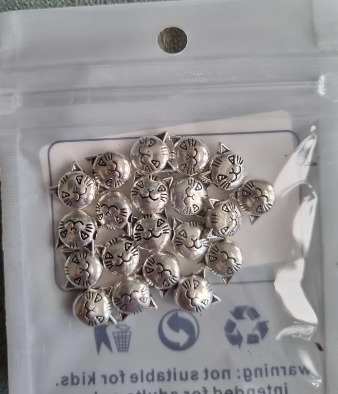 Cuentas de plata de estilo Tibetano con forma de corazón de gato de Color para la fabricación de joyas, cuentas de Metal hechas a mano con gran agujero