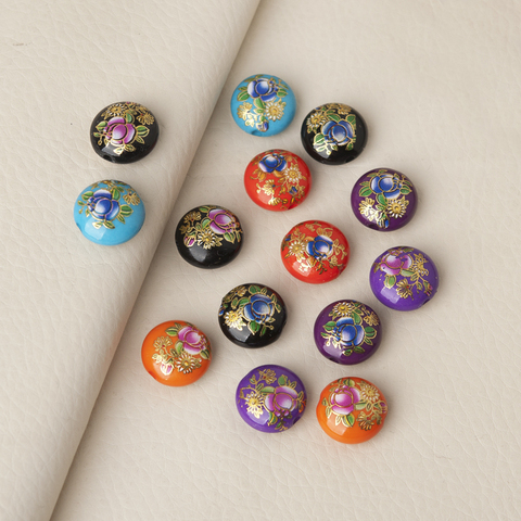 Cuentas espaciadoras de Tensha japonesas Vintage, cuadro japonés de resina, bola, rosa púrpura, patrón de flores, alrededor de 16mm de diámetro, 5 uds.