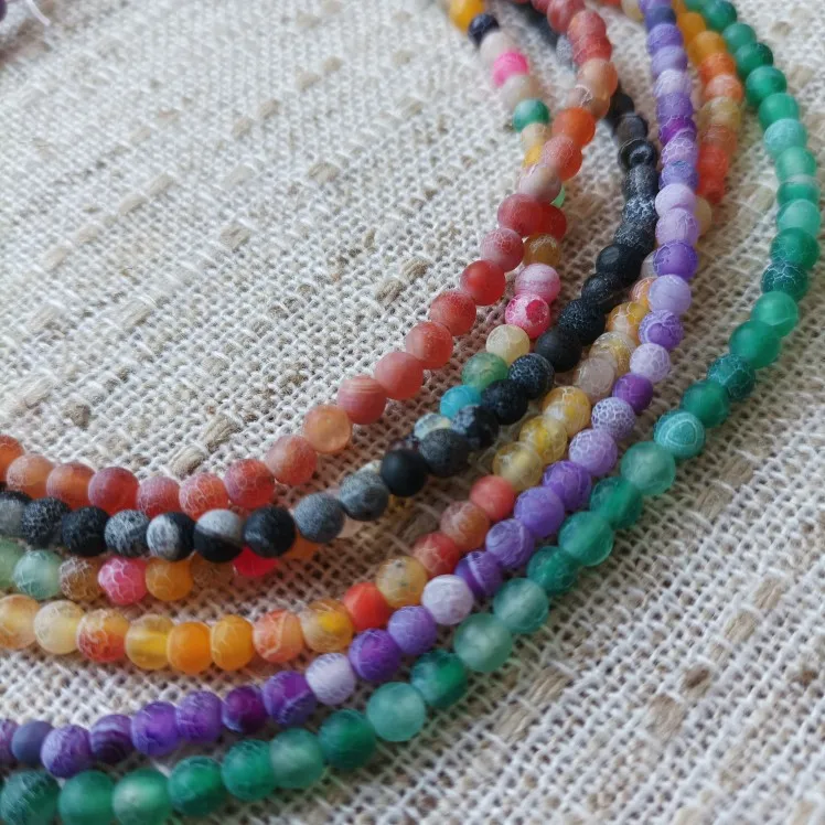 Cuentas naturales redondas de 4mm de diámetro para fabricación de joyas, 1 hilo (95 Uds./hebra), para collares y pulseras