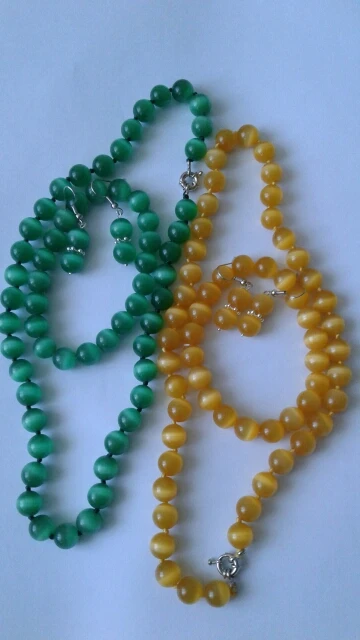 Cuentas redondas de ópalo de ojos de gato para mujer, cadena de 10mm de alto grado Diy, collar, pulsera, pendientes, joyería bonita de 18 pulgadas, 12 colores, venta al por mayor