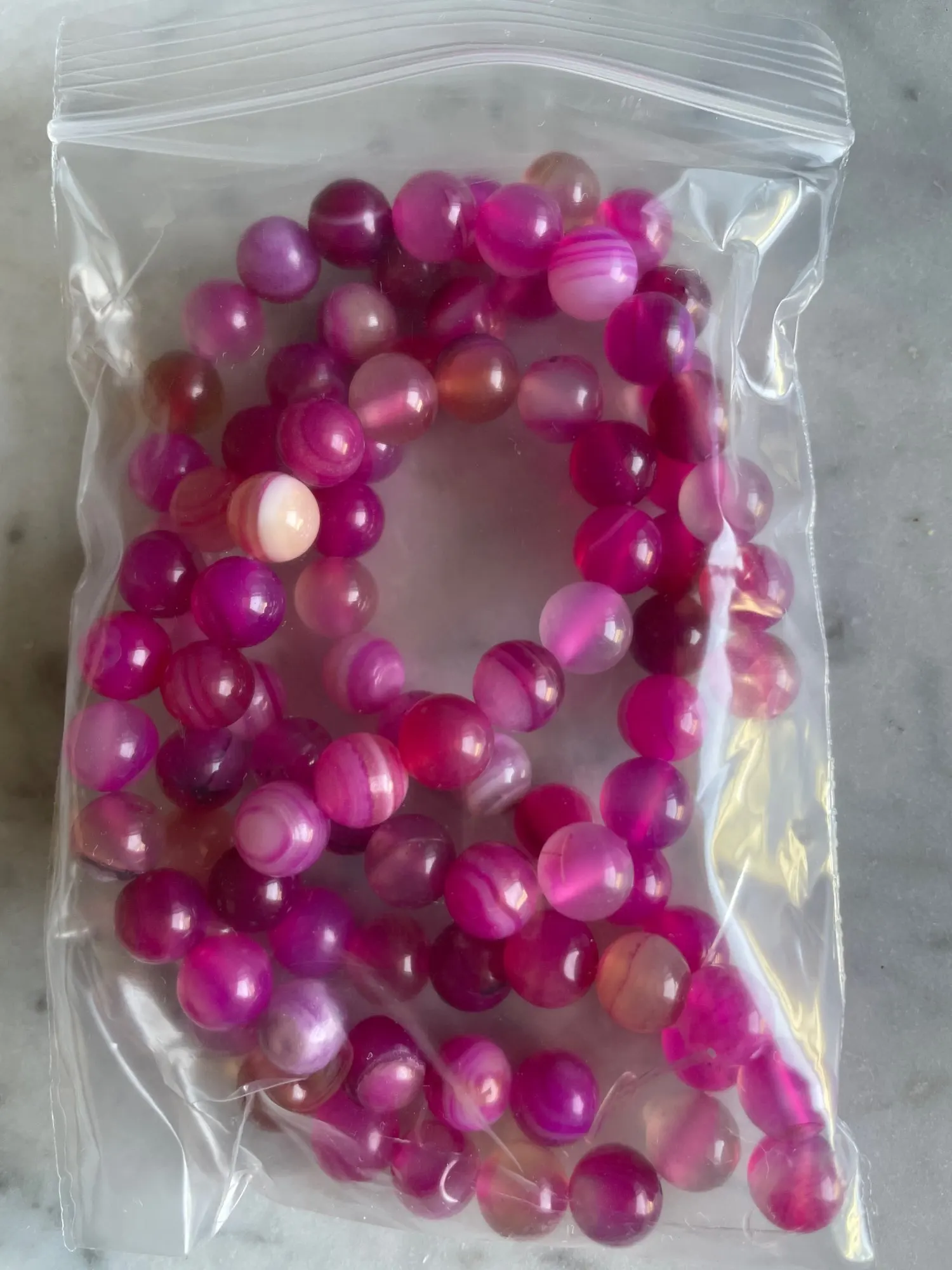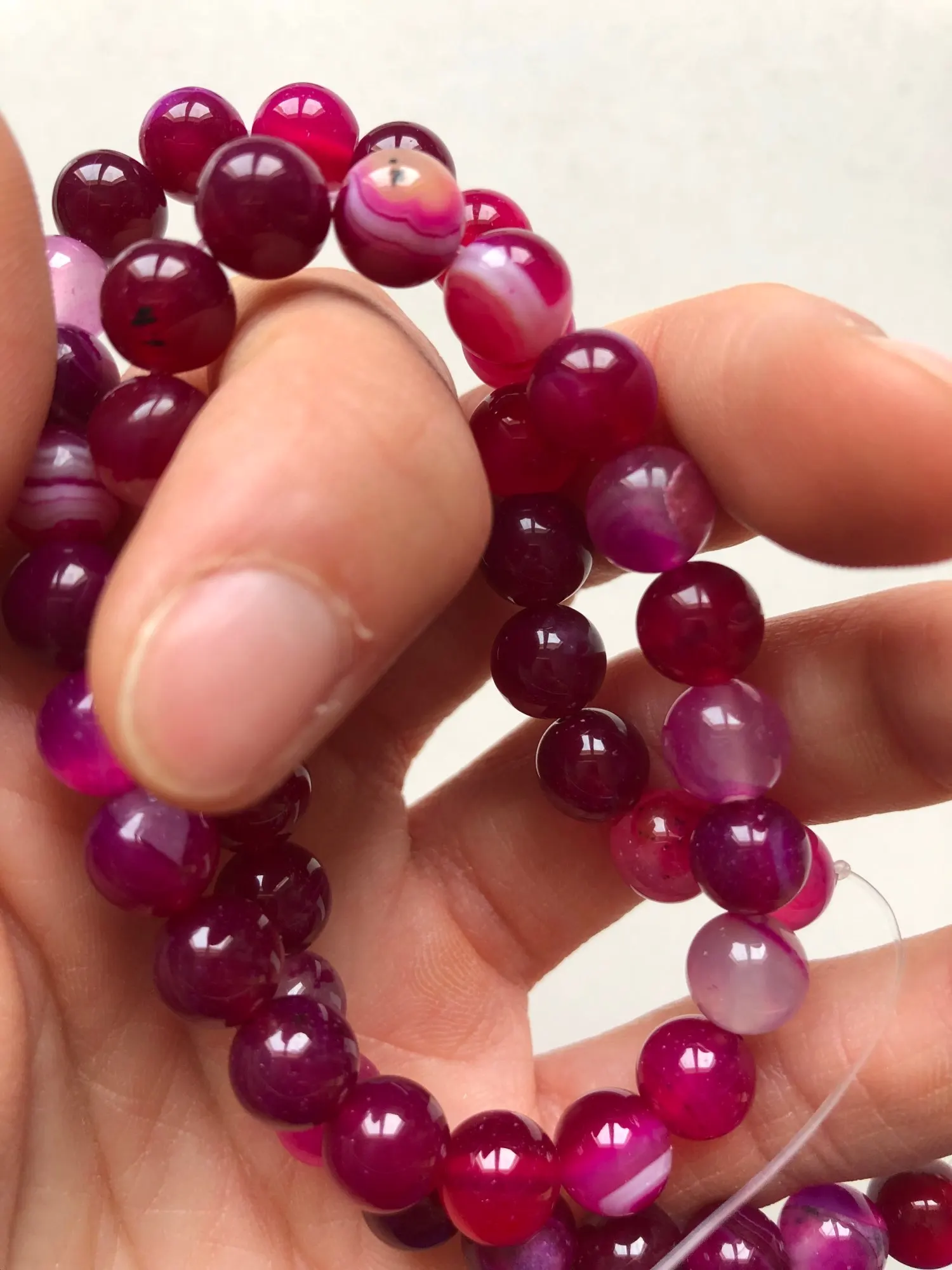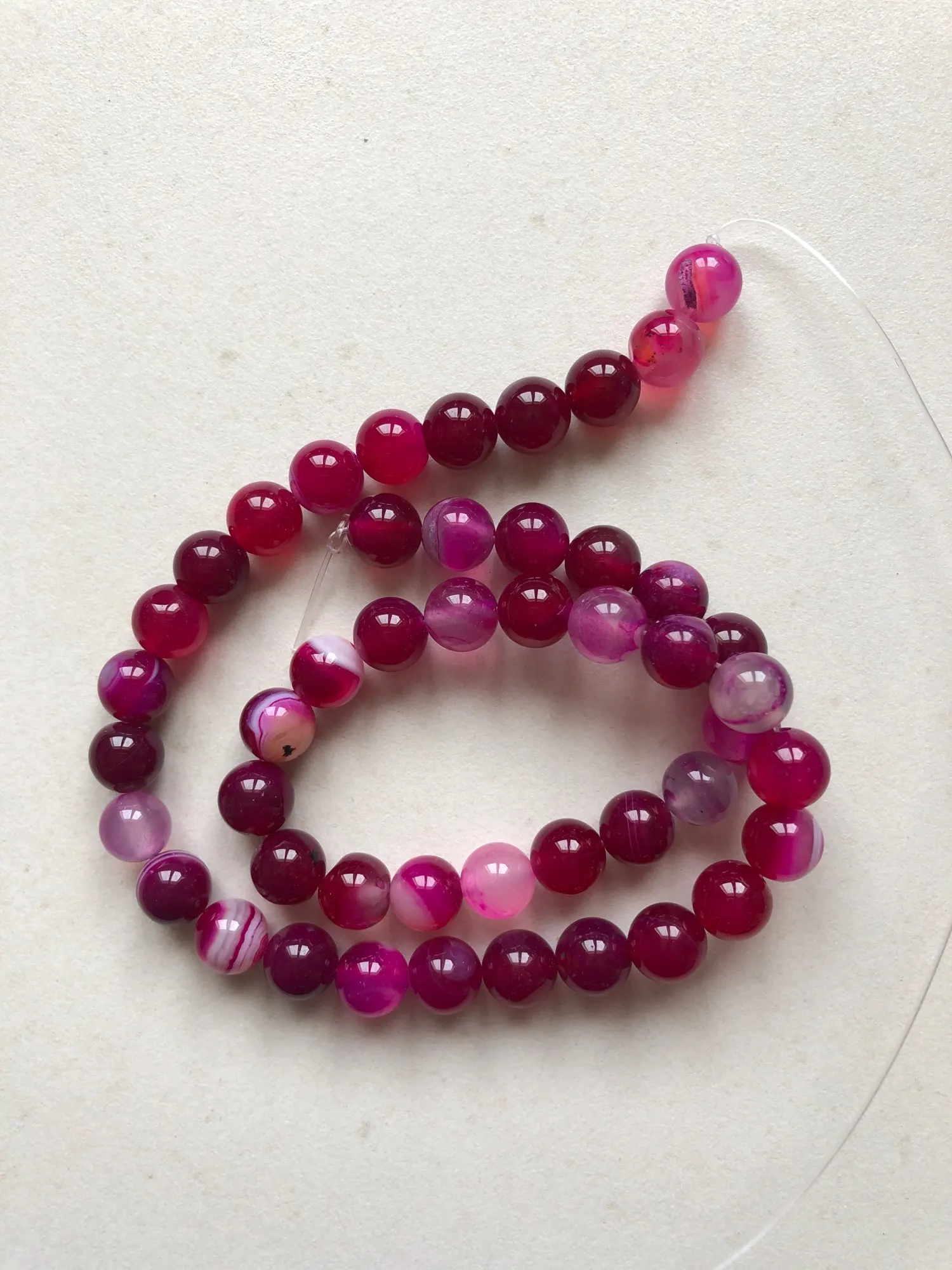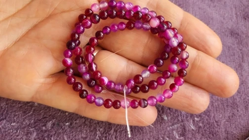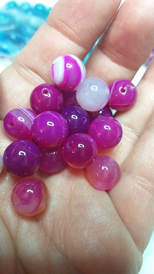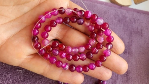 Cuentas redondas sueltas de Magenta con banda de piedra Natural, Ágatas con encaje, 4, 6, 8, 10, 12MM, tamaño a elegir