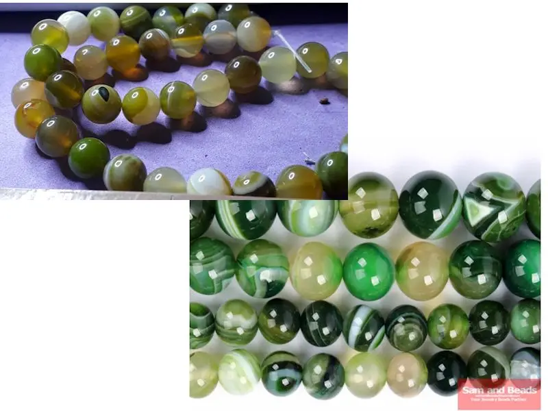 Cuentas redondas sueltas para fabricación de joyas, piedra amarilla Natural, ágata, rayas verdes, 4, 6, 8, 10, 12MM, tamaño a elegir, SAB51, envío gratis