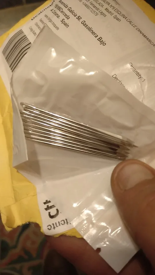 Descripción exacta. Envío rápido. Tres medidas con 4 agujas triangulares. Tienen muy buena pinta.