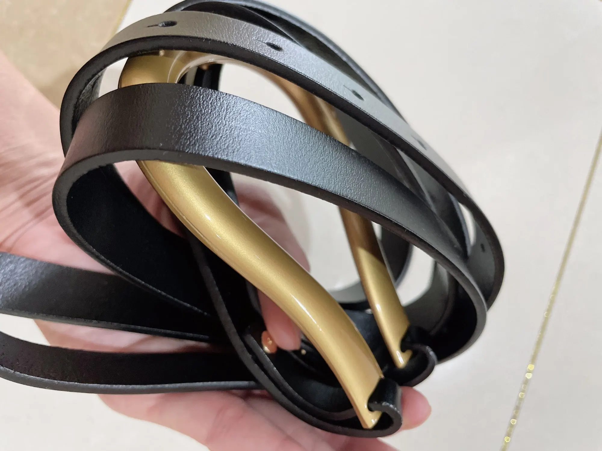 Cuero de moda de arco, metálico herradura hebilla grande U cinturón señoras cinturón Delgado desgaste suave cinturón mujer alta calidad correa de reloj
