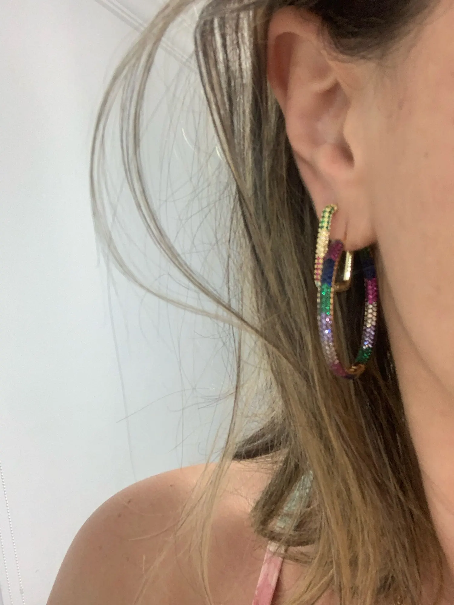 Gold Hoop Earrings , Cubic Zirconia Earring