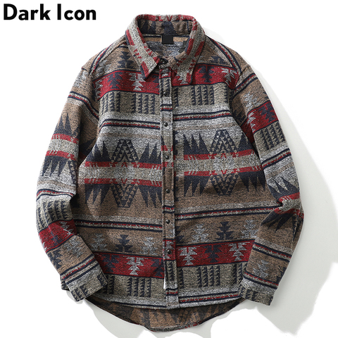 Dark Icon-camisas de lana con rayas geométricas para hombre y mujer, camisas de manga larga Harajuku, ropa para hombre