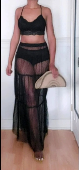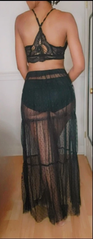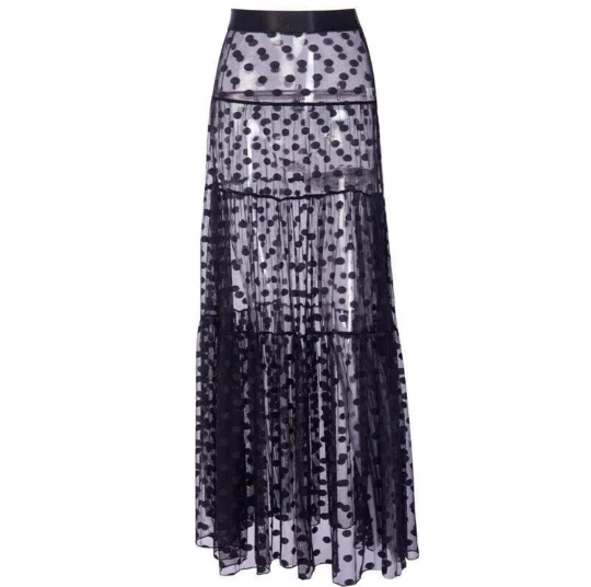 De baño las mujeres Maxi falda ver a través de lunares Retro plisado Bikini traje de baño cubierta de cintura elástica de faldas