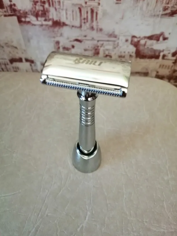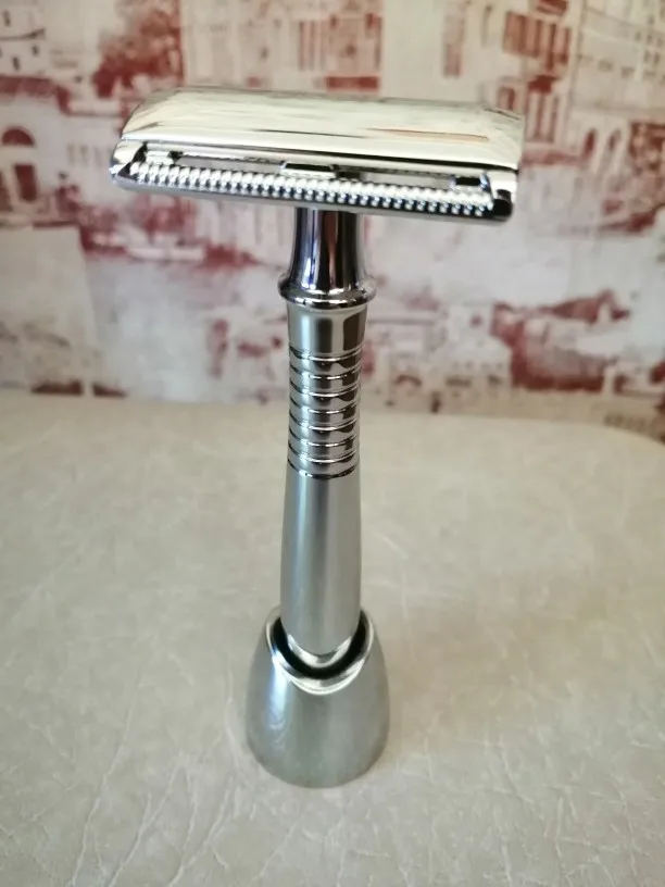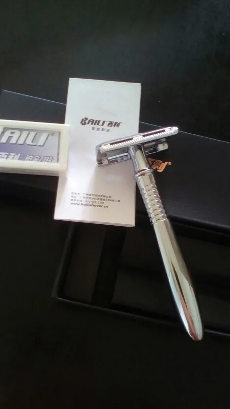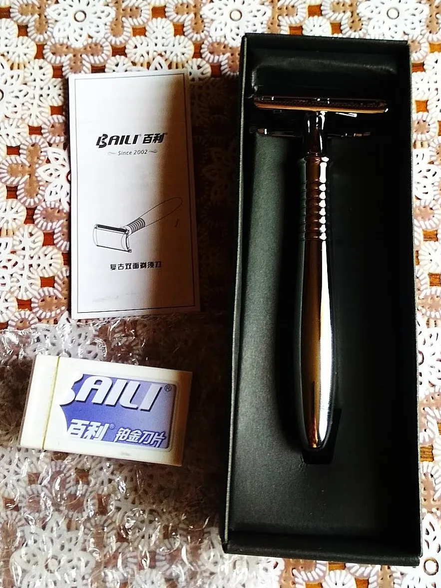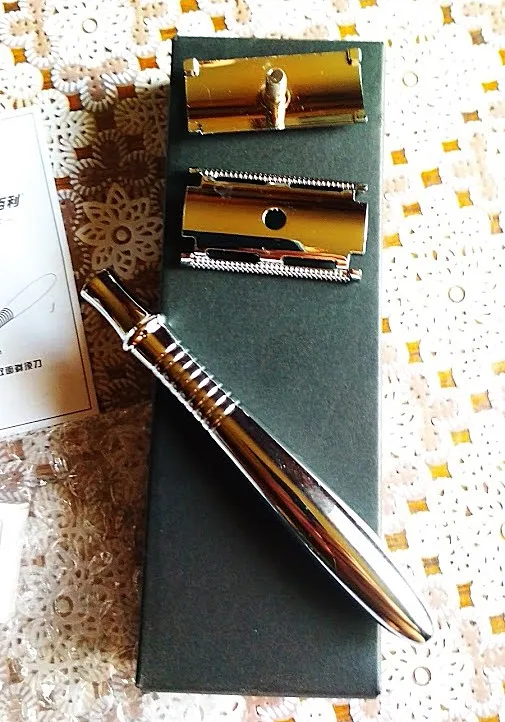 De doble filo de la maquinilla de afeitar de seguridad Vintage máquina de aleación de plata de mango largo razors Manual conjunto de cuchilla para afeitar 1 manejar + 5 cuchillas de afeitar